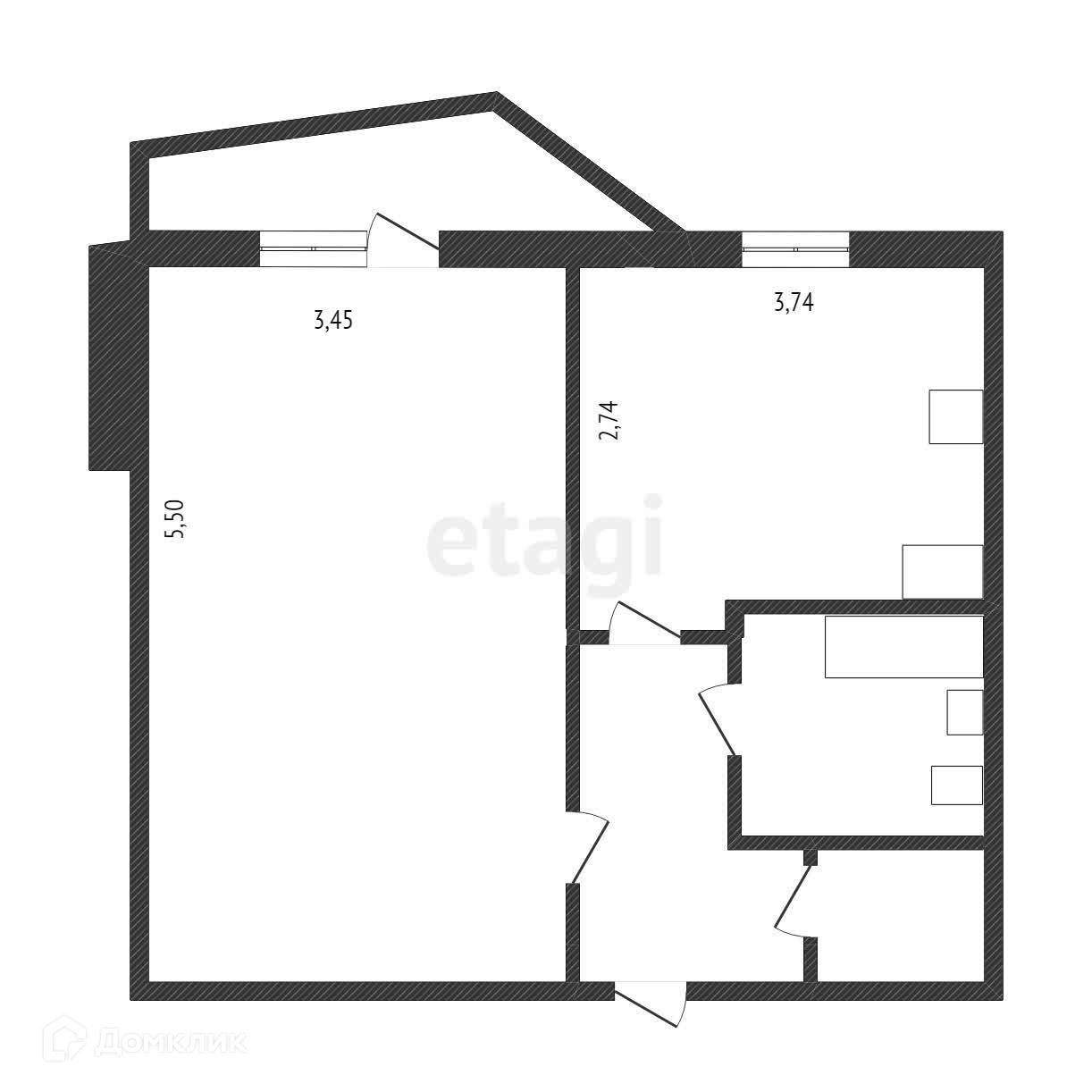 Очень удачная планировка, где кухня 9,2 м2, комната 19 м2, коридор с гардеробной, совместный санузел.