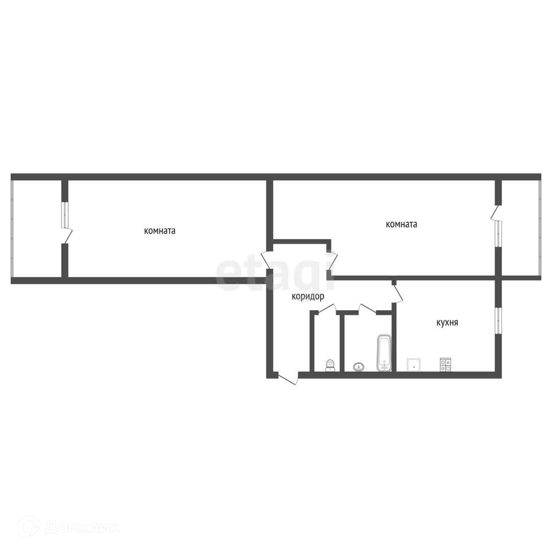 2 балкона (один застеклен, второй нет), окна пластиковые.