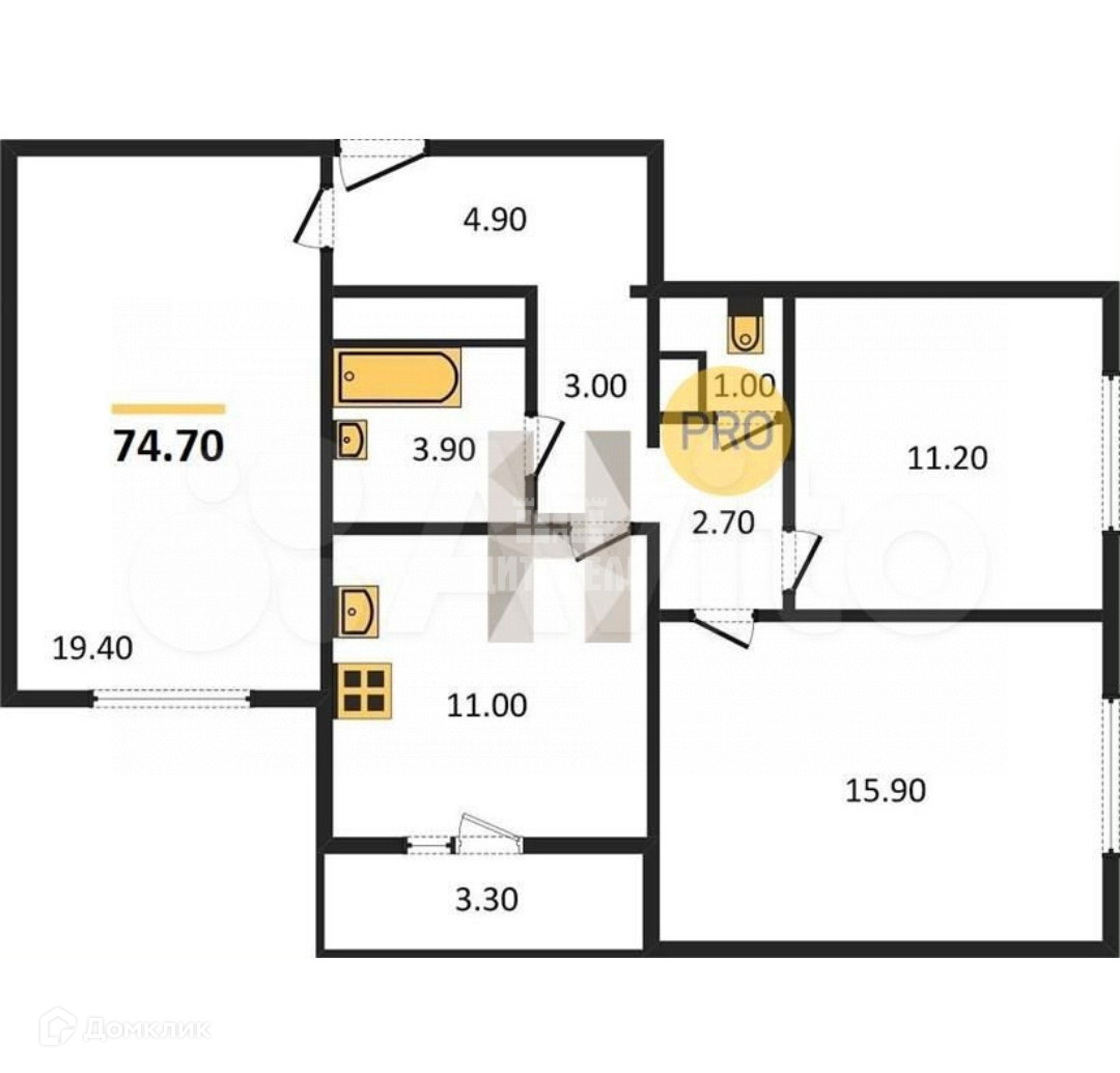 Общая площадь 74.7 м2