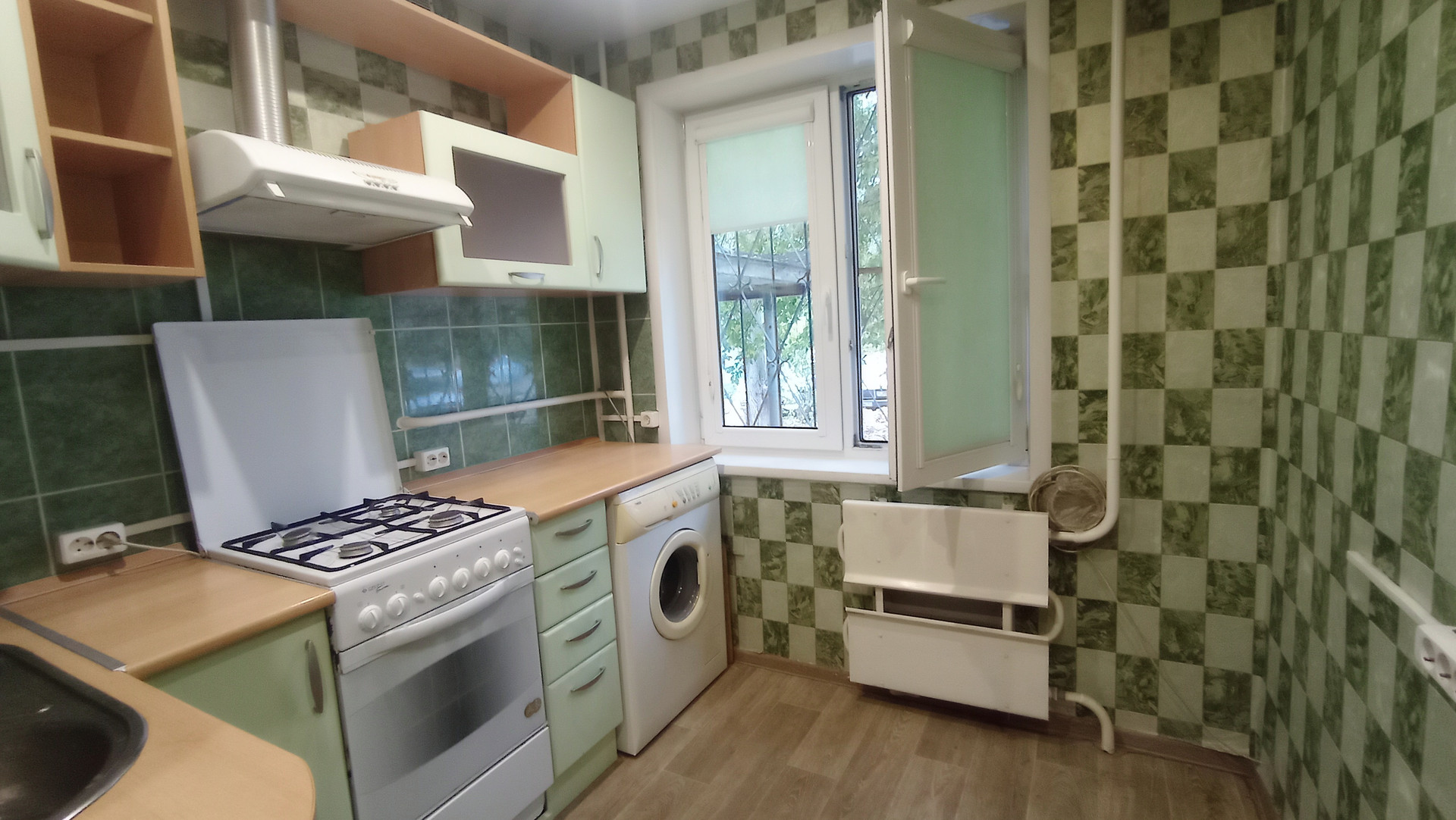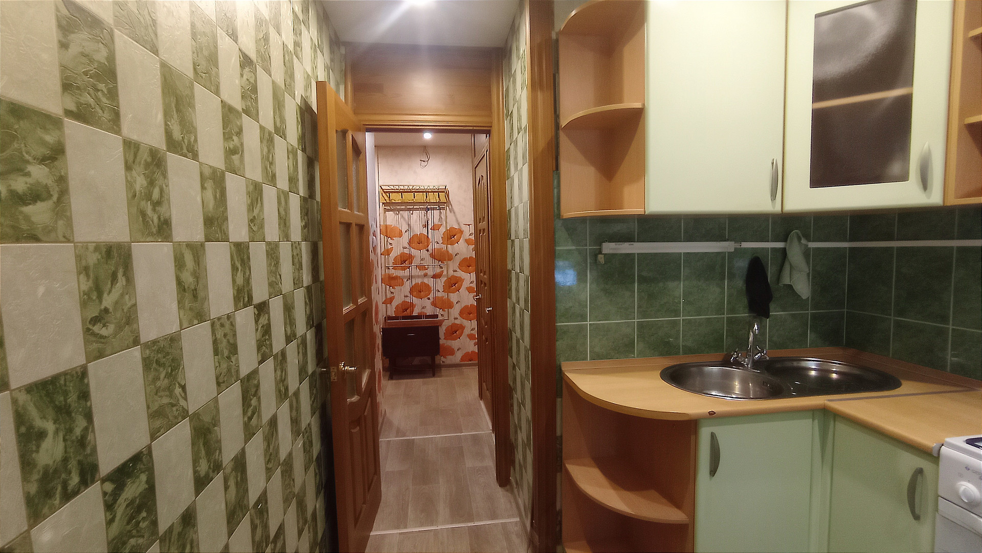 - Кухня 5,8 кв.м, оснащена кухонным гарнитуром, который остаётся в подарок новому владельцу.