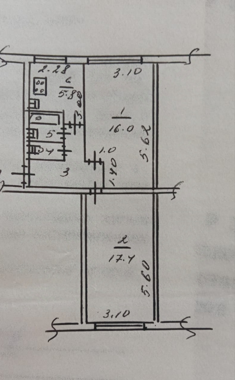 Площадь кухни 5.8 м2