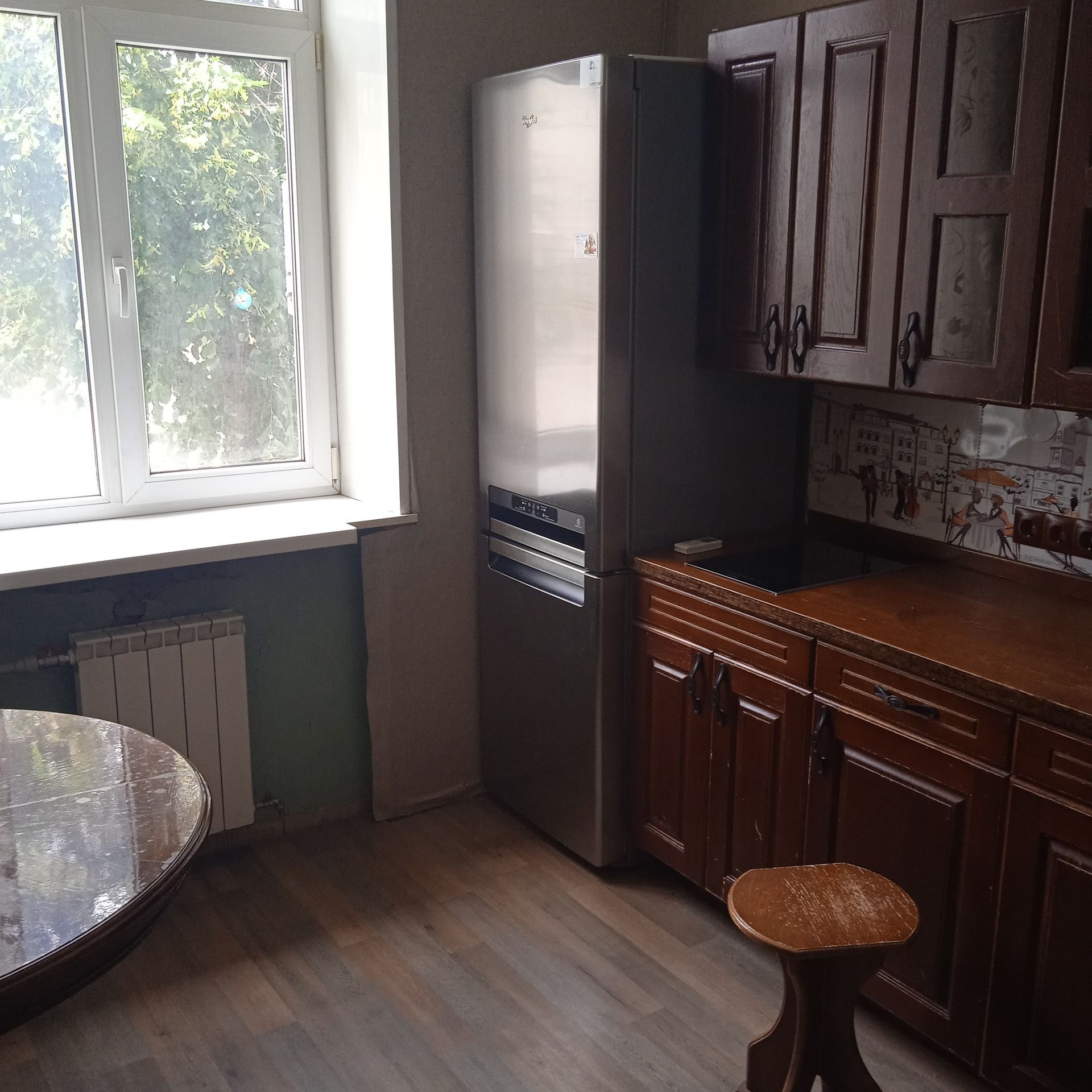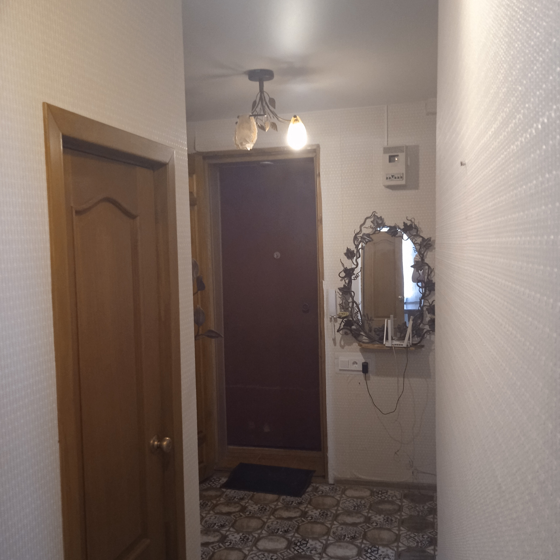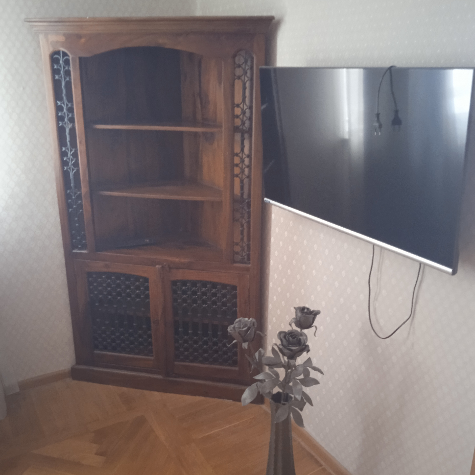 Ремонт выполнен в классическом стиле: двери из натурального дерева, напольные покрытия: паркет в отличном состоянии, дизайнерская плитка, кухня из массива дерева. В интерьере использовано много кованых декоративных элементов.