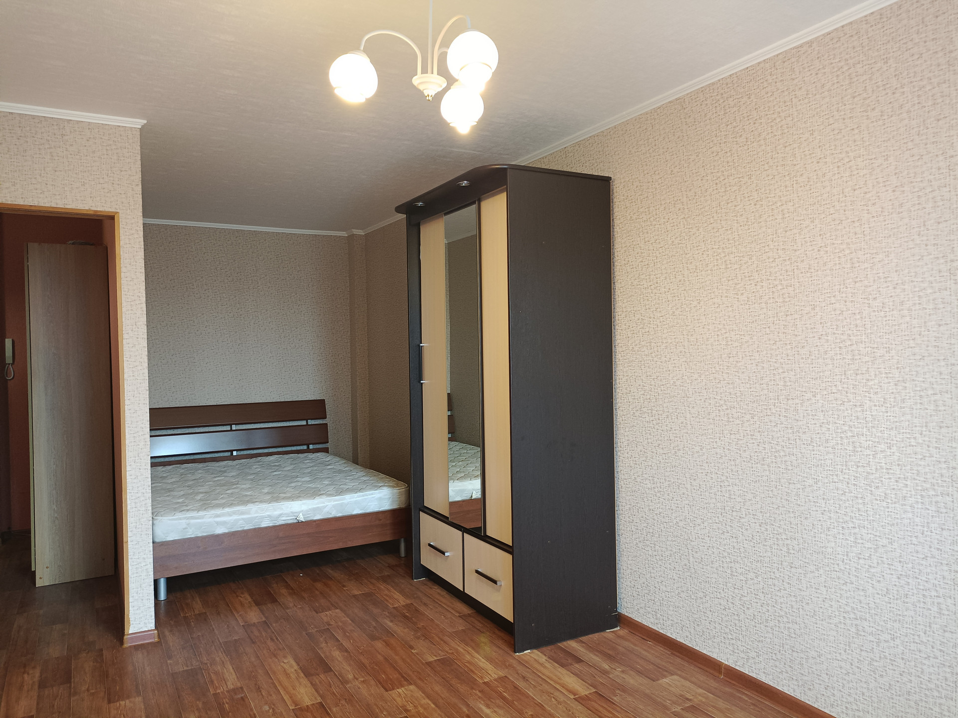 Большая комната с альковом - 19м2, при разумном зонировании получится спальня и гостиная (остается двухспальная кровать и шкаф)
