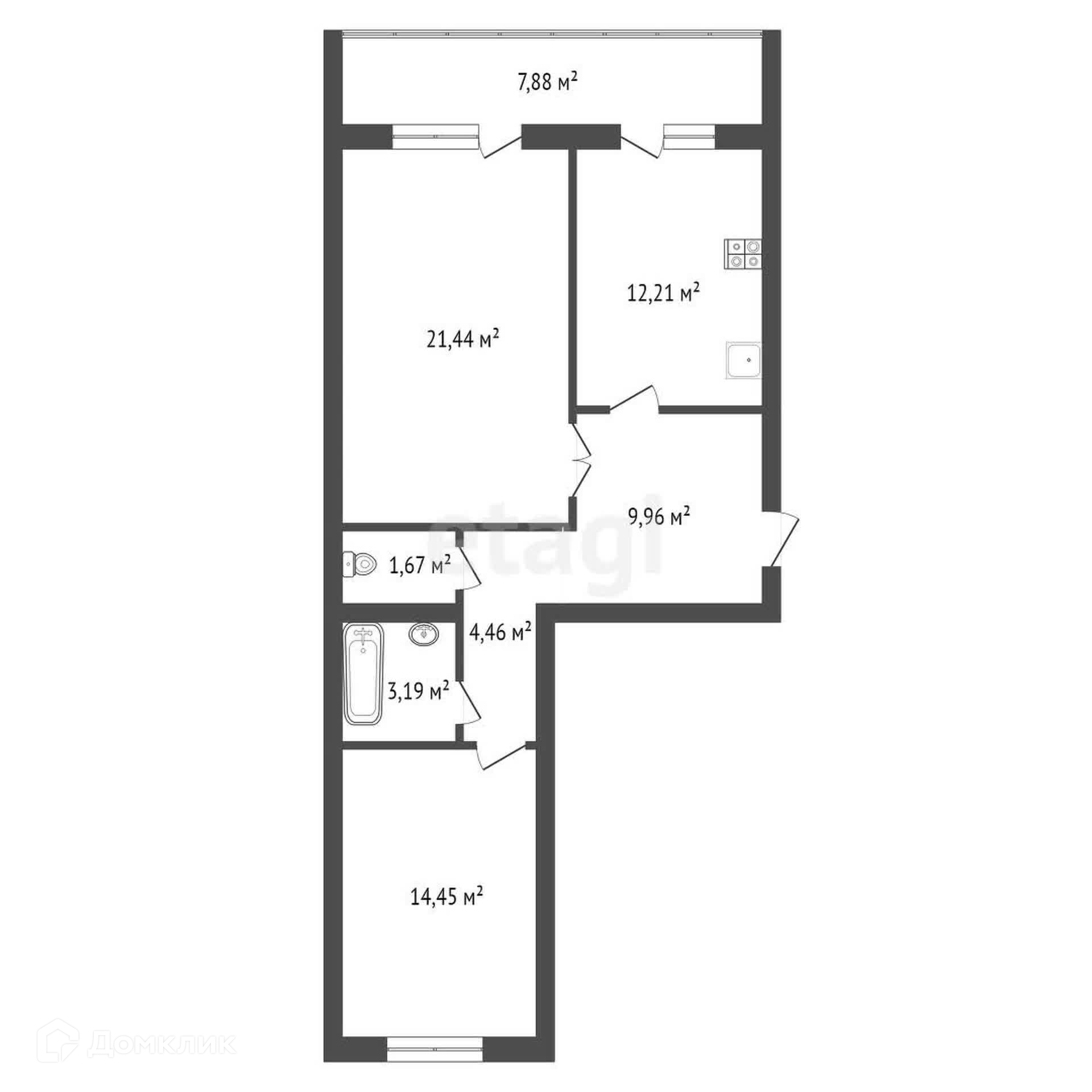 Общая площадь 67.4 м2