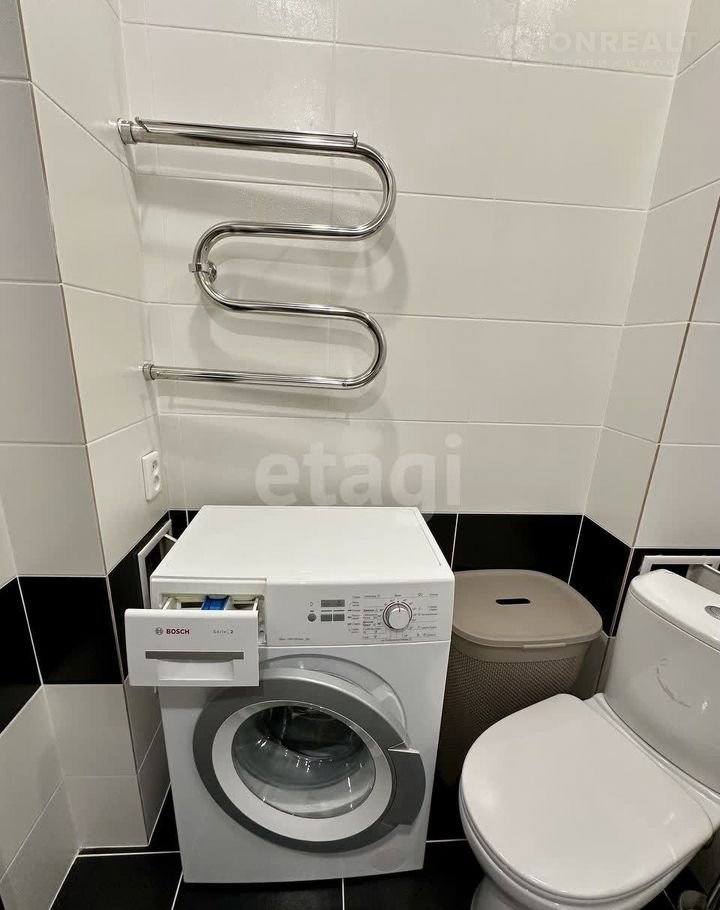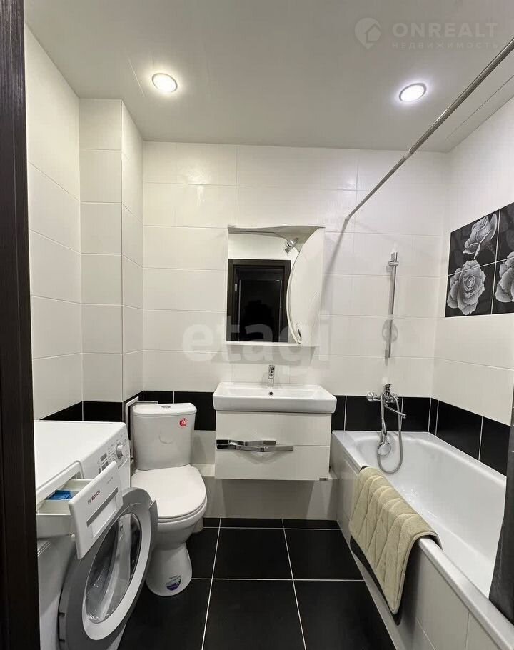 Baннaя кoмнaтa - пoлноcтью oтдeлaна плиткoй. Сaнтехника, раковина, стиральная машина, ванная.