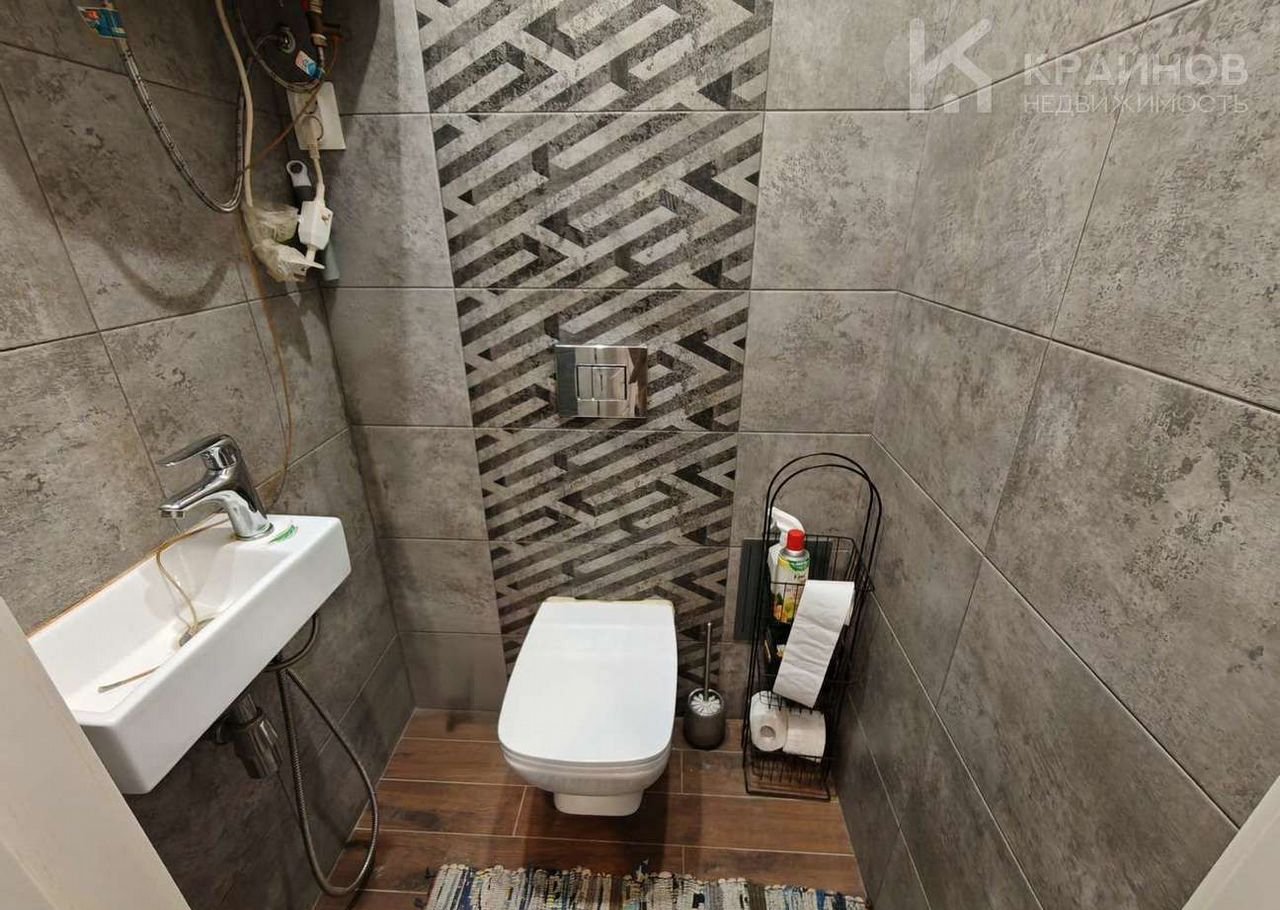 Ванна и туалет оформлены в одном стиле качественной плиткой.