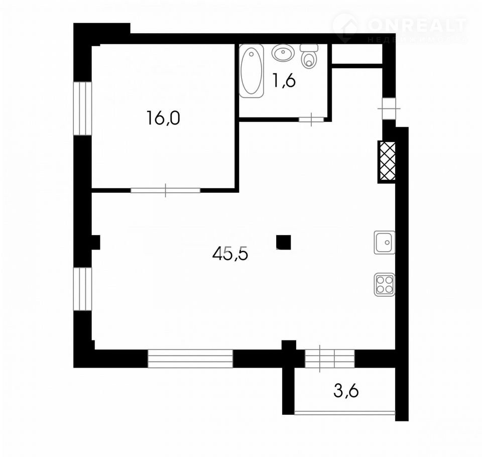Балкон, лоджия 1 лоджия
