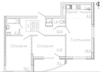 Продажа 3-ком. квартиры, 67.2 м2, улица Фёдора Тютчева, 93/4
