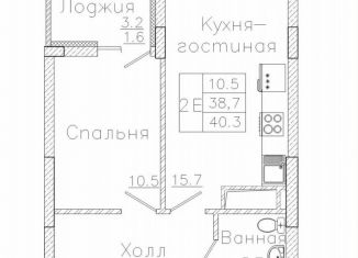 Общая площадь: 40.3 м2