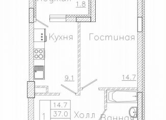 1-комнатная квартира на продажу, 38.7 м2, улица Фёдора Тютчева, 93/4