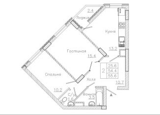 Продаю 2-комнатную квартиру, 55.6 м2, улица Фёдора Тютчева, 93/4