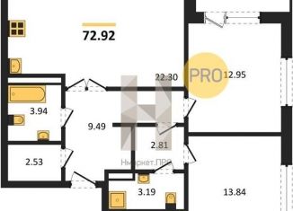 Продается двухкомнатная квартира, 72.9 м2