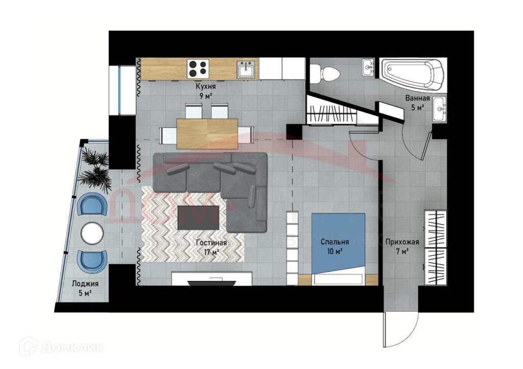 Общая площадь 55 м2