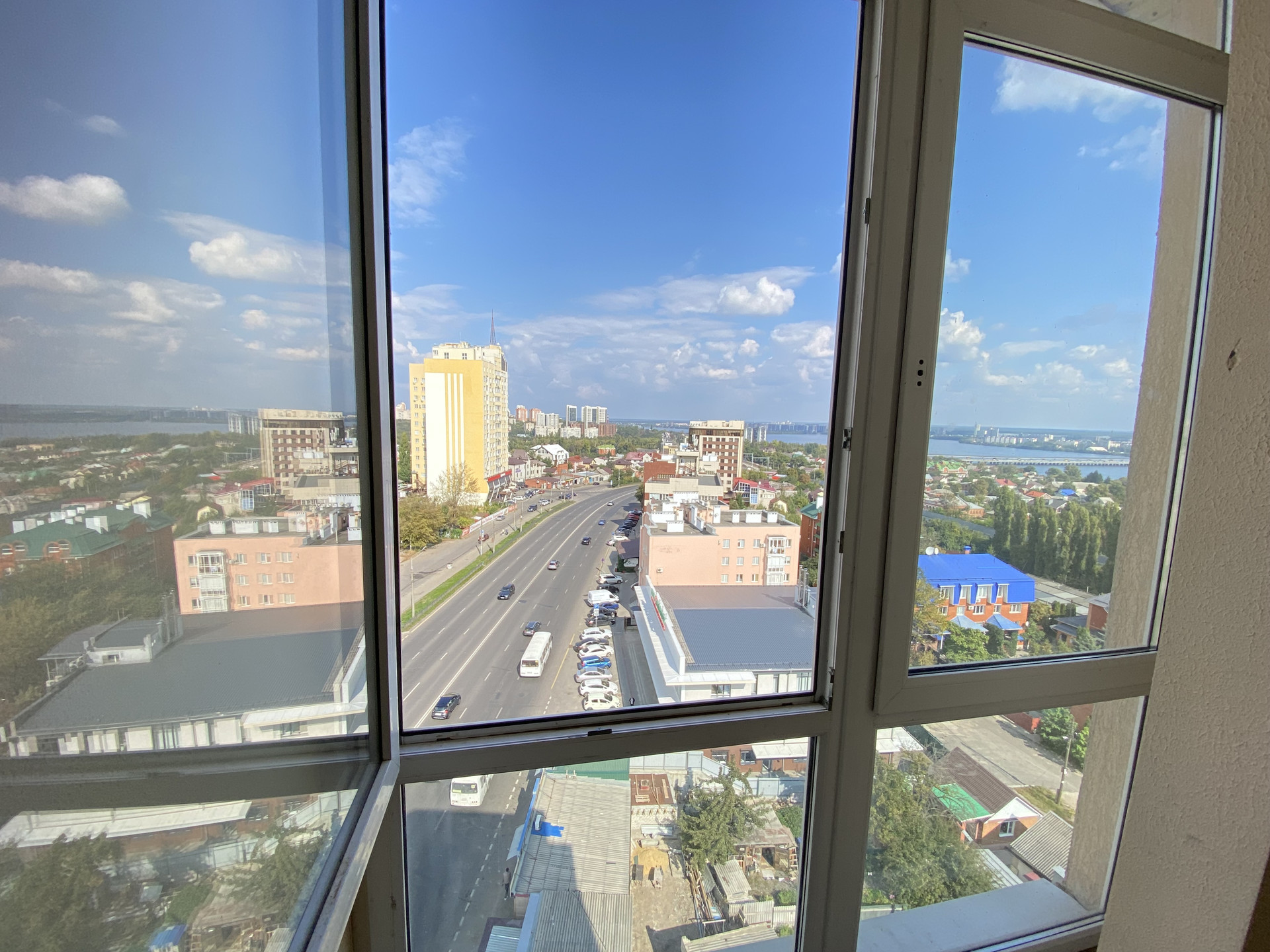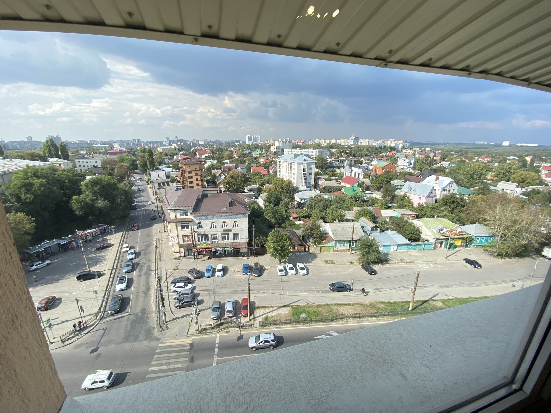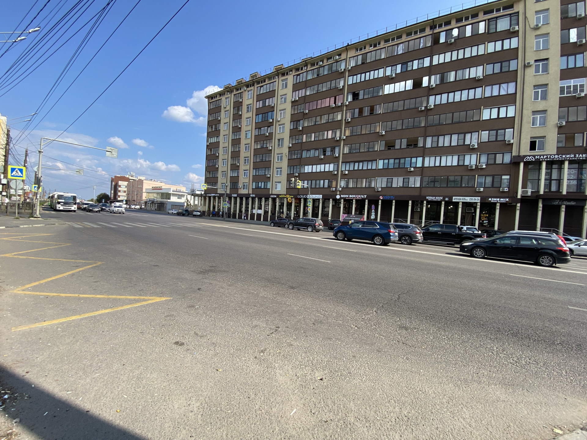 Здание расположено на красной линии улицы Ленина. Окна офиса выходят на проезжую часть, но за счет высокого этажа шума в окнах нет.