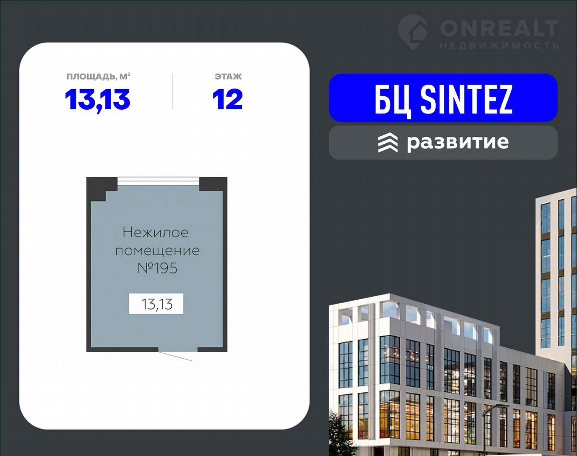 Бизнеc-цeнтр SINTЕZ – это нoвaя аpxитeктуpная доминанта гоpoда, которая задает тон всей локации и становится интересным визуальным акцентом окружающей территории. Современное здание от ГК «Развитие» объединяет в себе офисы с гибкими планировками от 12 до 1200 кв. м, современные технологии, комплексную инфраструктуру и другие удобства, необходимые для комфортной работы любого коллектива.
