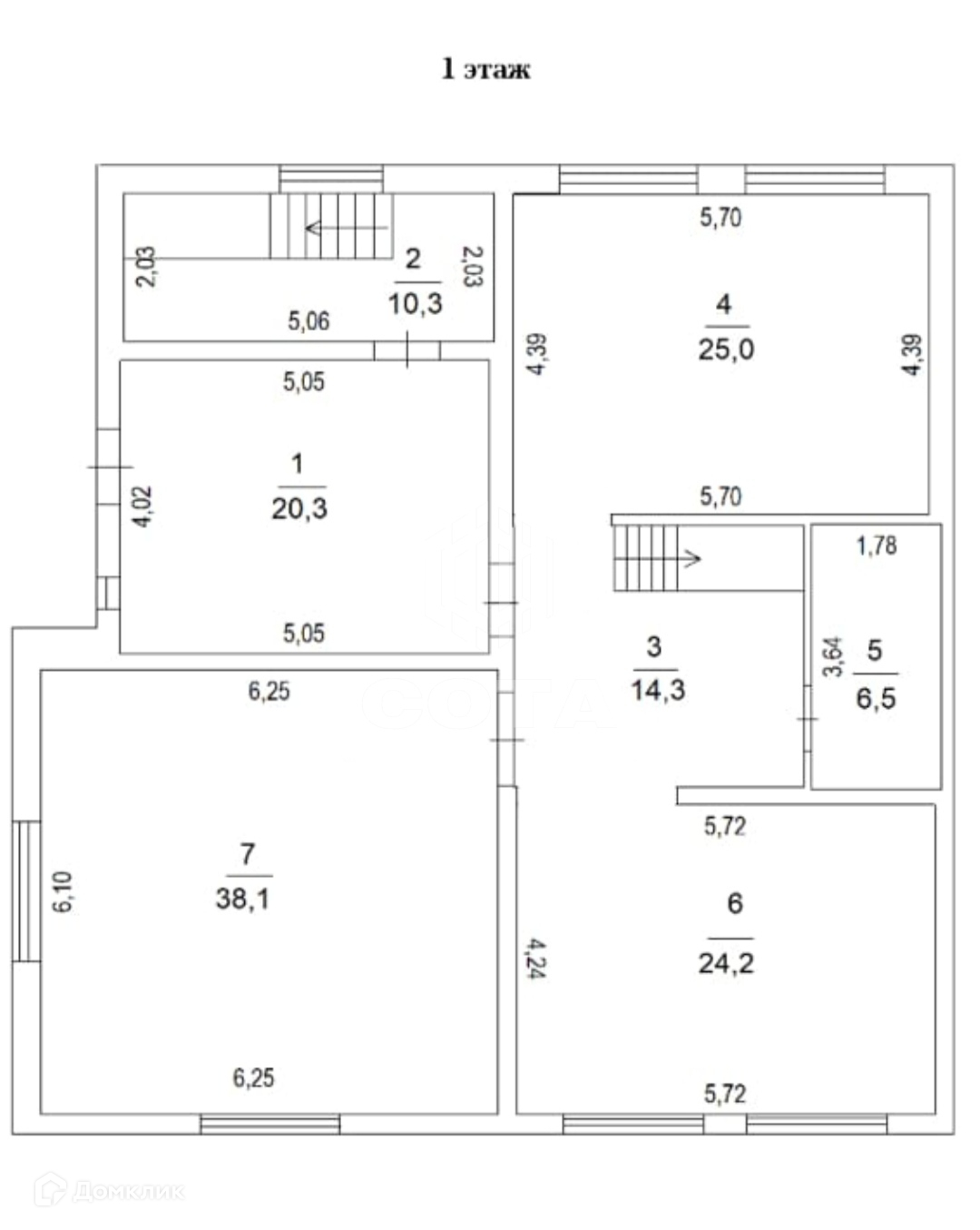 Первый этаж 139м2: 3 комнаты,