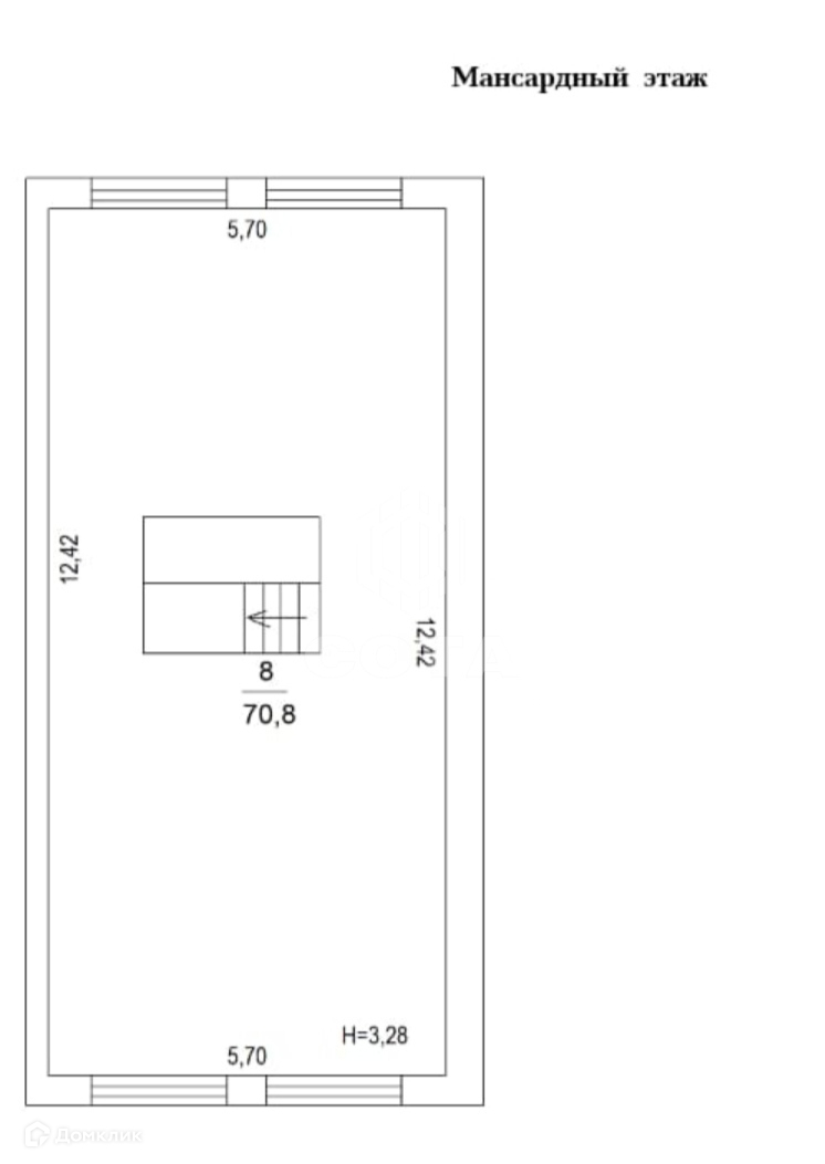 Мансардный этаж 70,8 м2, можно сделать две спальни и санузел.
