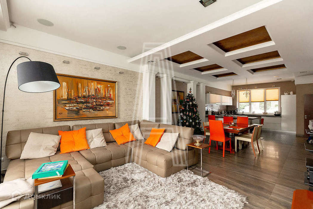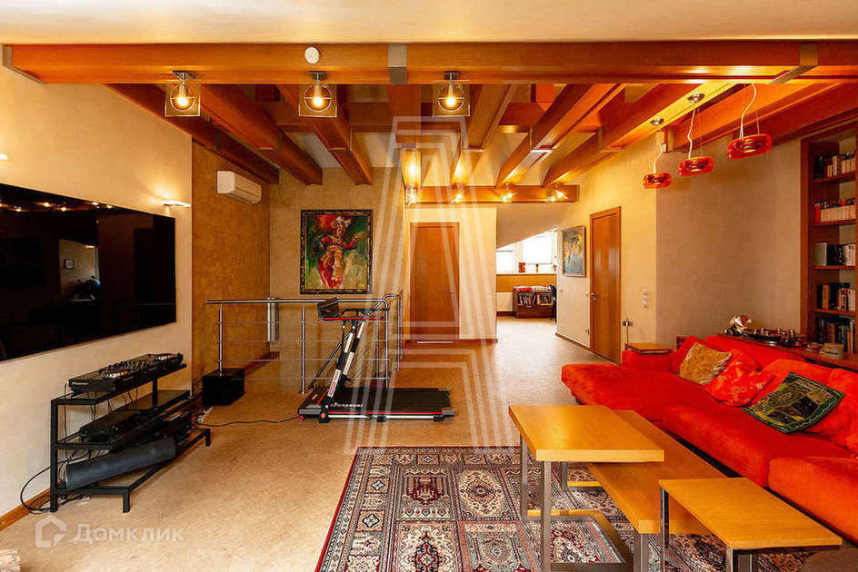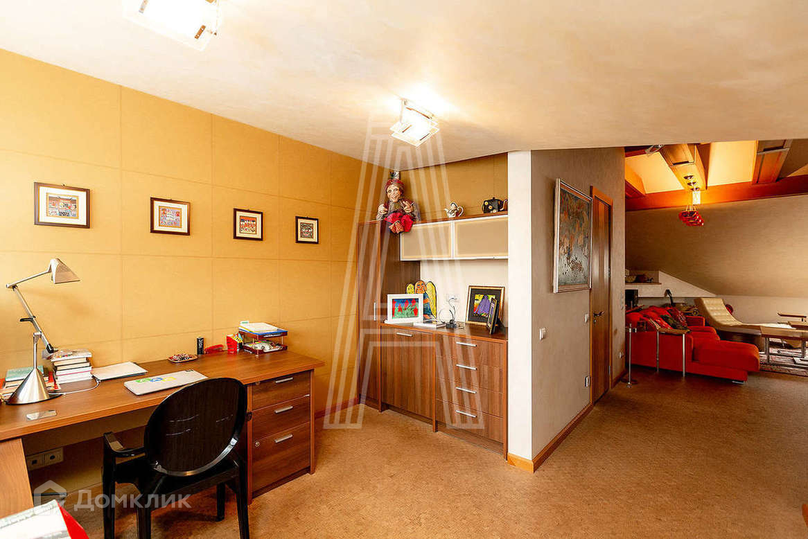 Подвальный этаж: спортзал, сауна, душевая,, хозяйственное .помещение (постирочная и инженерно-техническая зона). 1 этаж: 2 прихожие (выходы на центральную аллею комплекса и к парковочным местам), а также кухня-гостиная. 2 этаж: спальня, гардеробная, детская, ванная. Мансарда: просторная чилаут зона с библиотекой и камином, кабинет, гостевая комната. Санузел на каждом этаже. Вся встроенная мебель остается.