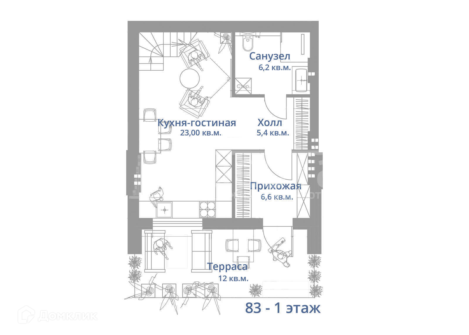 Общая площадь 83 м2
