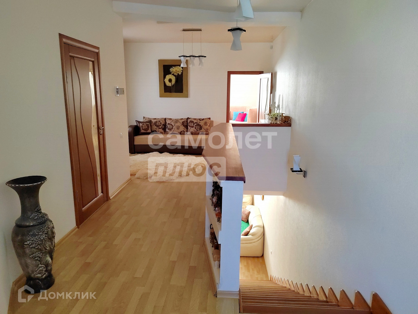 В доме добротный качественный ремонт: теплые полы, кондиционеры на 2 этаже, на полу ламинат и питка.