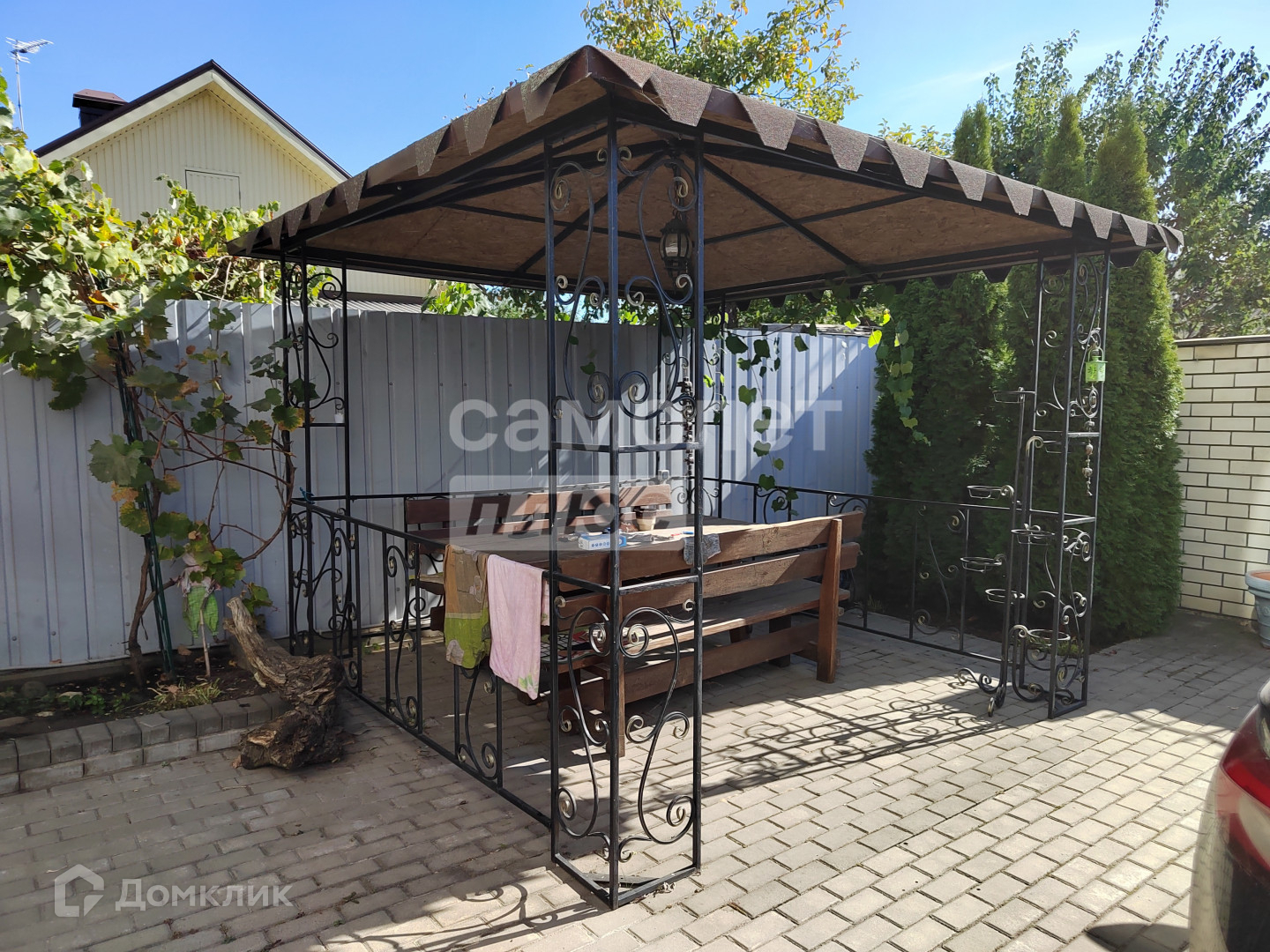 На участке расположена беседка, мангальная зона, место для машины