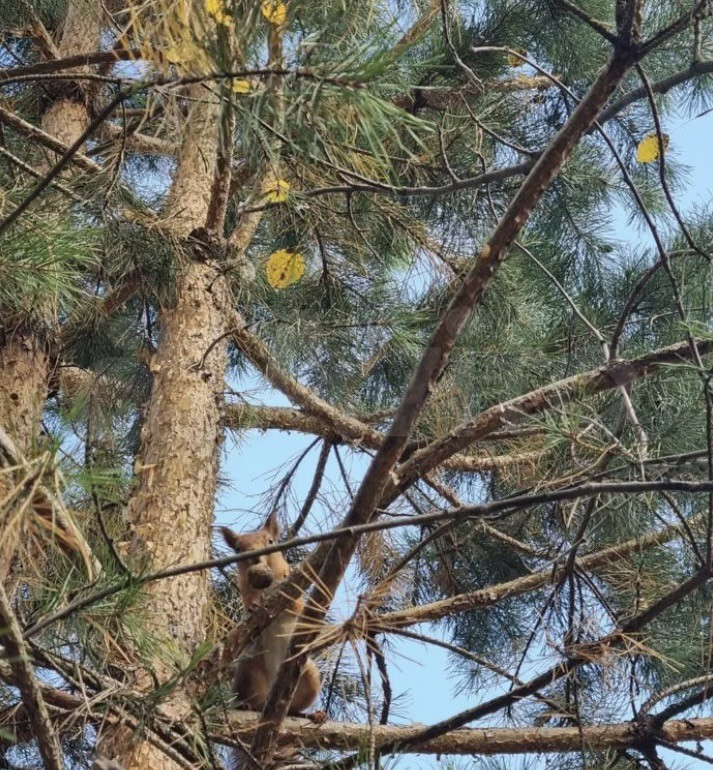 Участок с соснами и белками