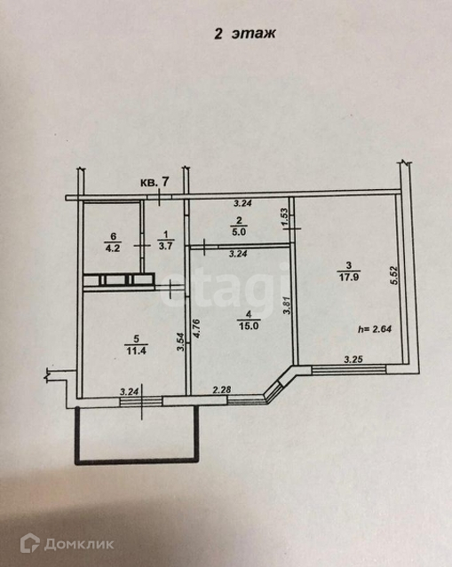Общая площадь 57.2 м2