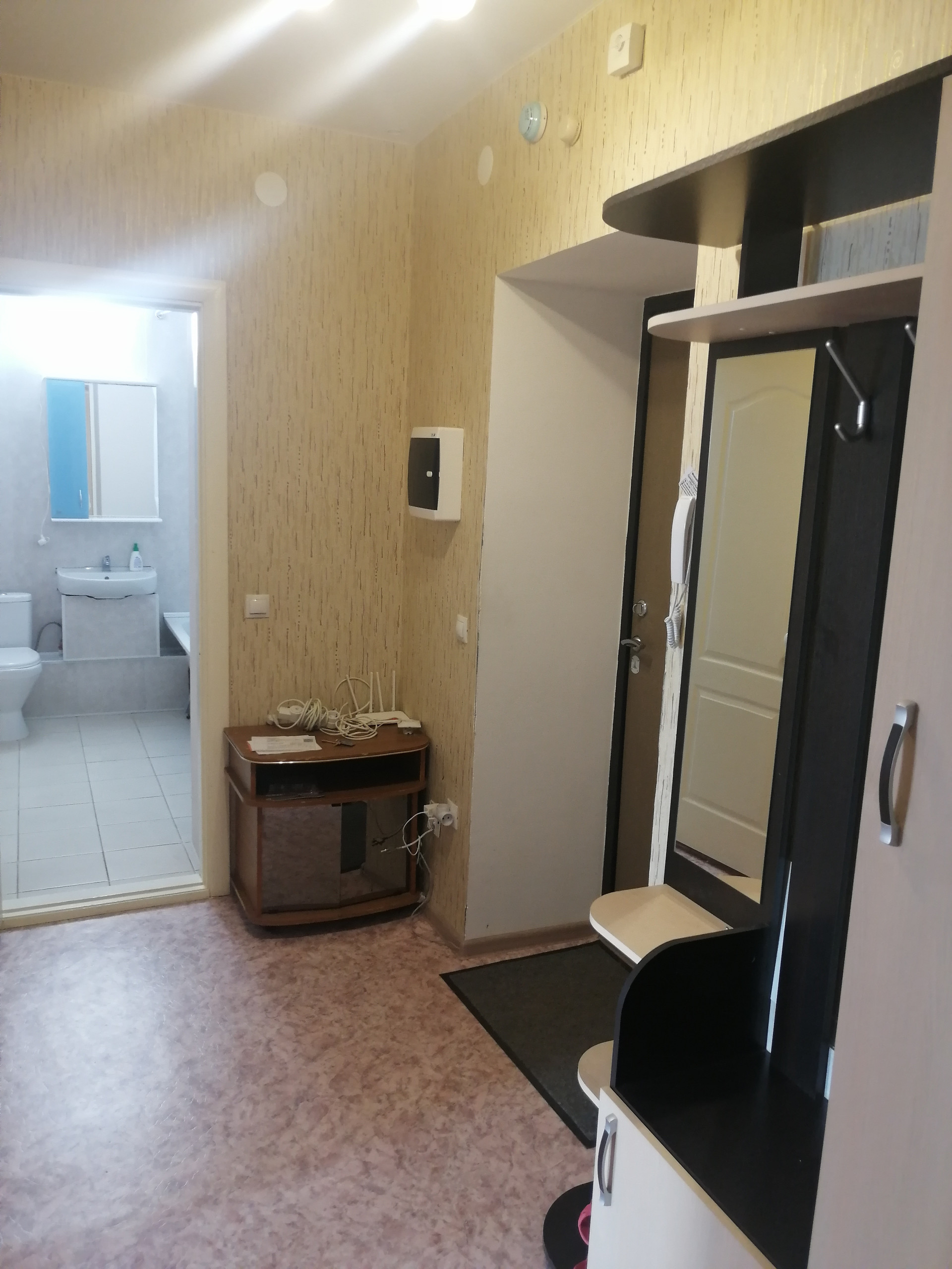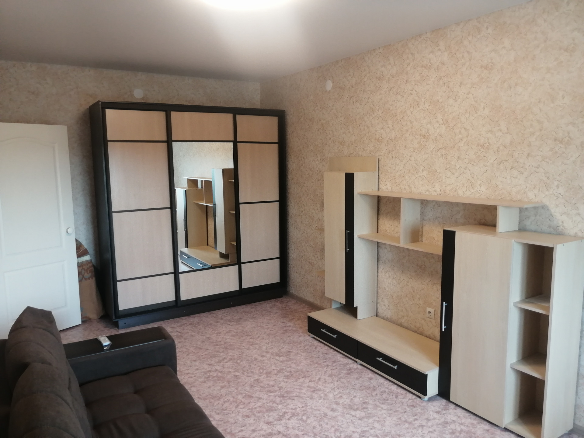 В квартире есть абсолютно вся мягкая и корпусная мебель и техника.