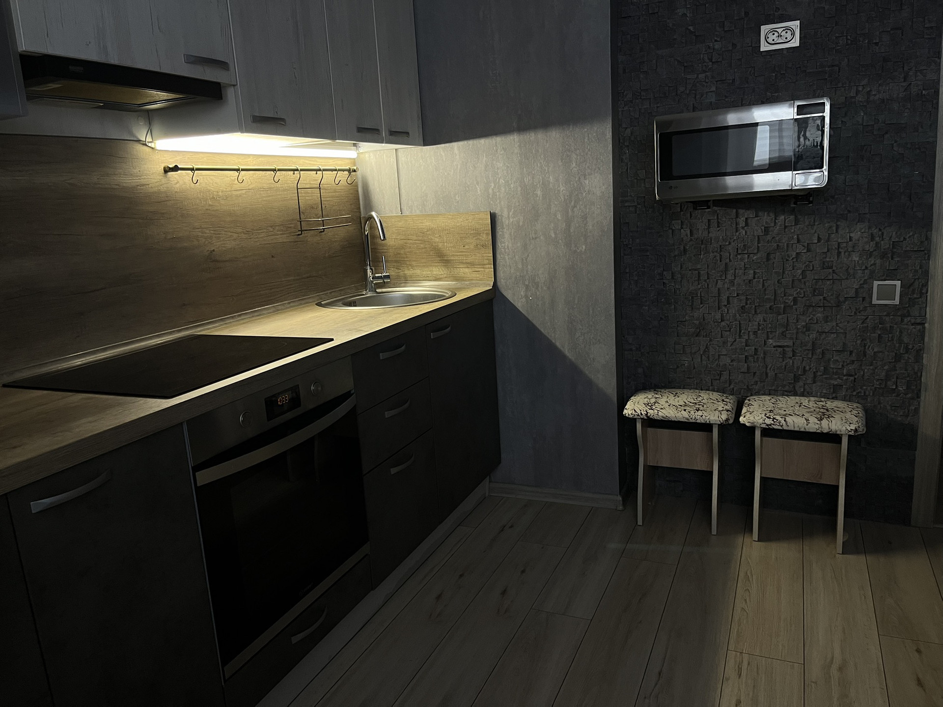 Квартира с индивидуальным интерьерным решением в современном стиле, качественной отделкой, мебелью и техникой для жизни от ведущих брендов (LG):
