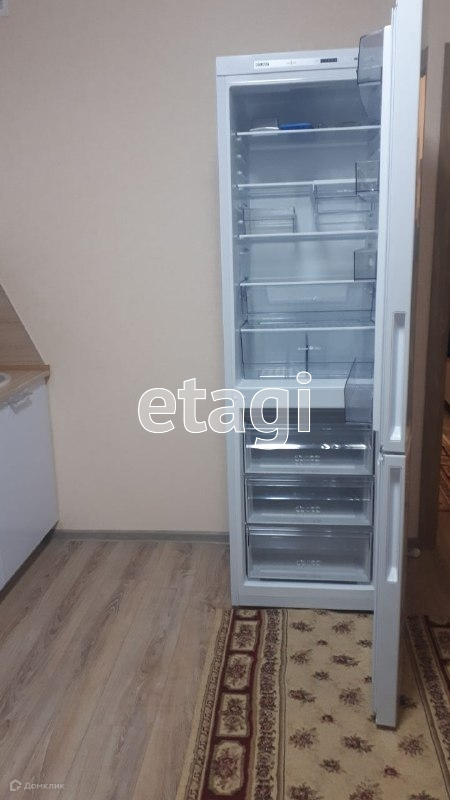 В квартире имеется просторная жилая комната, в которой установлены необходимая мебель и техника для комфортного проживания: диван, шкаф, телевизор, холодильник, стиральная машина.