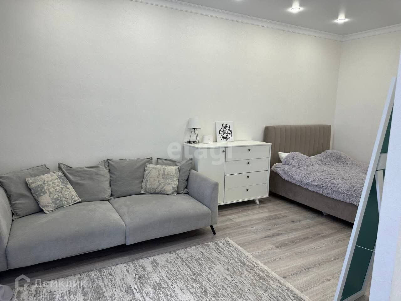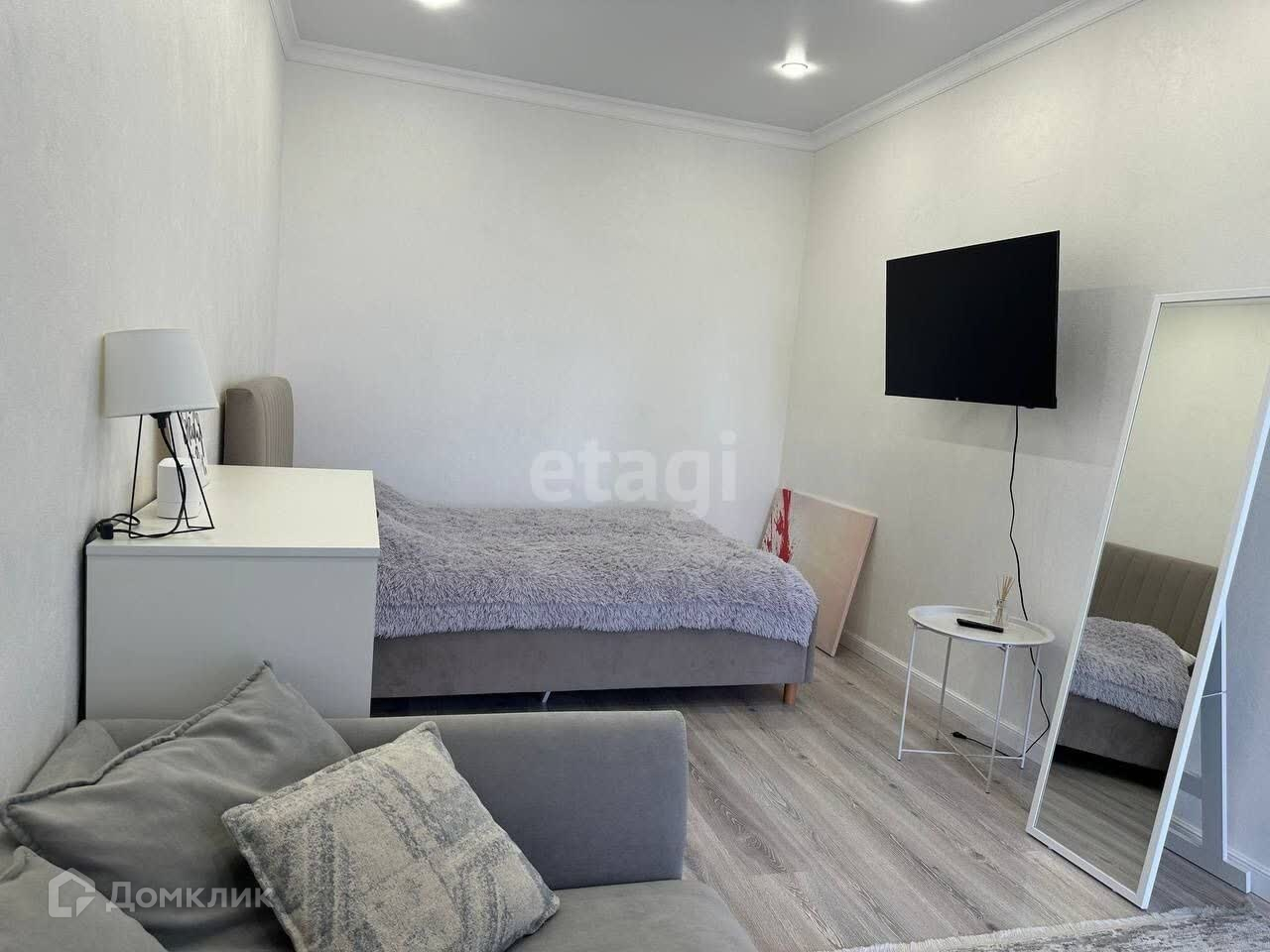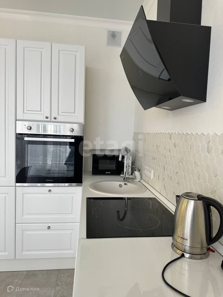 Сдаётся в аренду однокомнатная квартира. Есть вся необходимая мебель и техника, включая кухонный гарнитур, обеденный стол и стулья, конвекционную плиту, стиральную машину, диван, телевизор, большую кладовую, а также предметы первой необходимости (утюг, гладильная доска, чайник, пылесос).