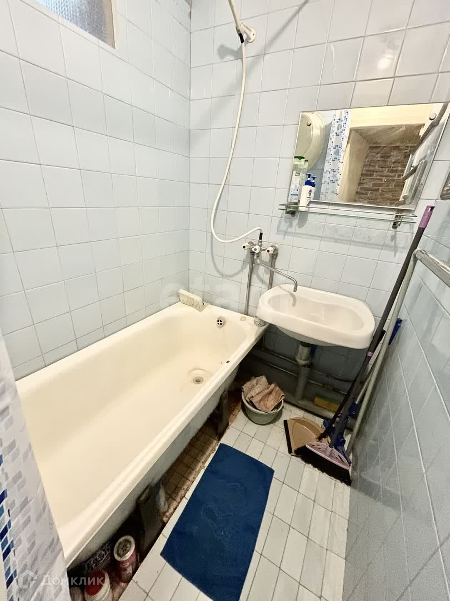 Санузел раздельный: унитаз, ванная, стиральная машина, зеркало, умывальник.