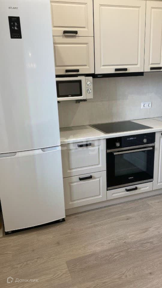 В квартире есть вся необходимая мебель и техника: кухонный гарнитур, обувница, шкаф в прихожей, мебель в ванной комнате, а также бытовая техника — духовой шкаф, варочная панель, холодильник, микроволновая печь, чайник.