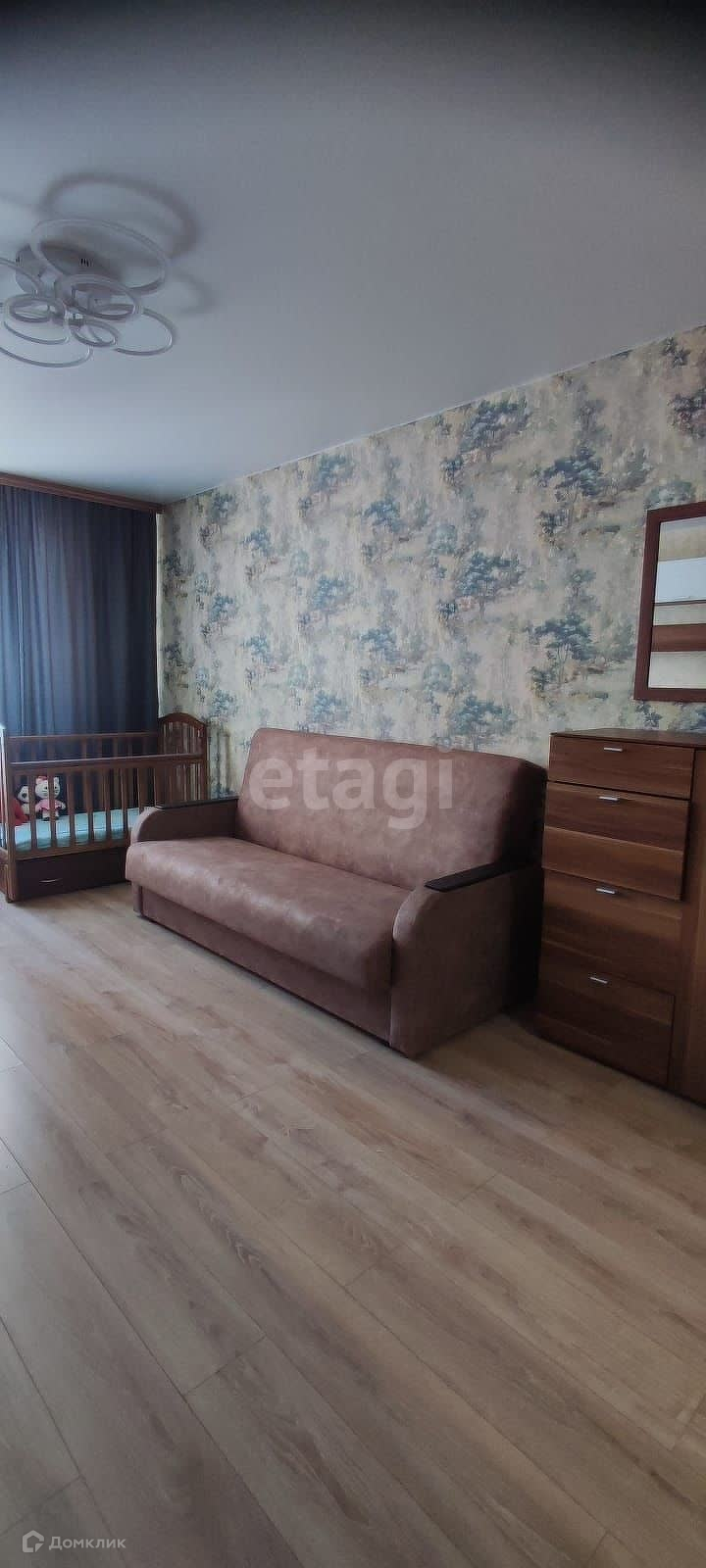 В квартире есть все для комфортного проживания: холодильник, плита, стиральная машина, телевизор, диван, детская кровать, кухонный гарнитур.