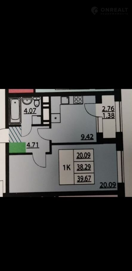 Общая площадь 39.7 м2