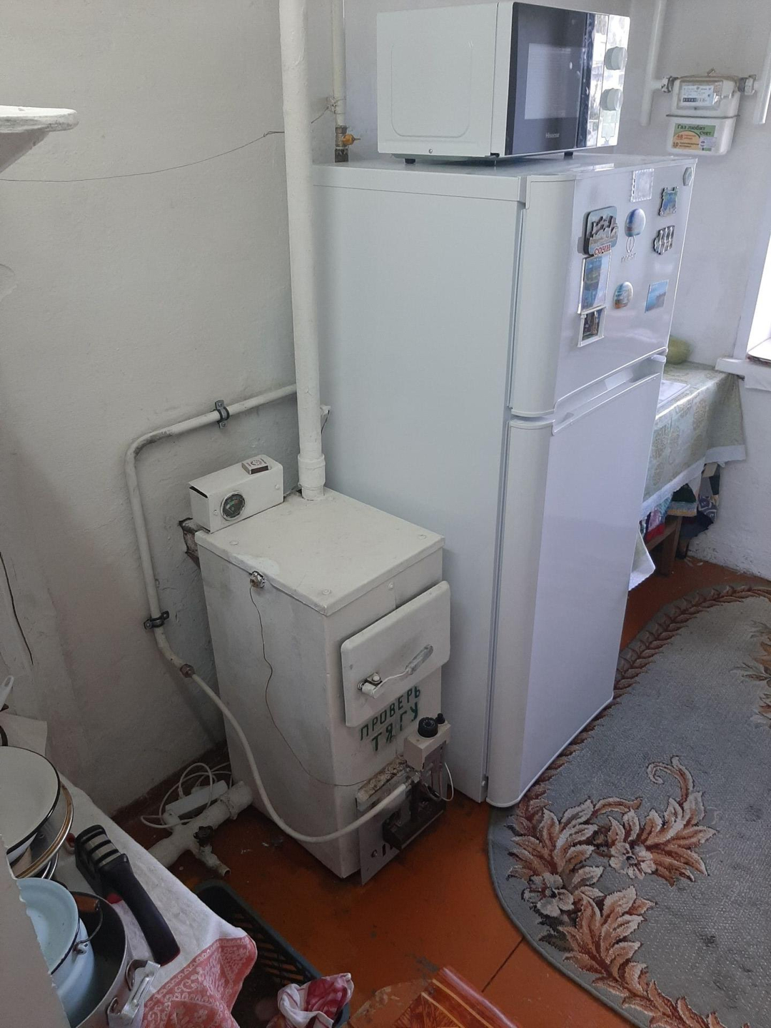 В доме есть электричество,  газовое отопление, холодное и горячее водоснабжение ( бойлер ), местная канализация.