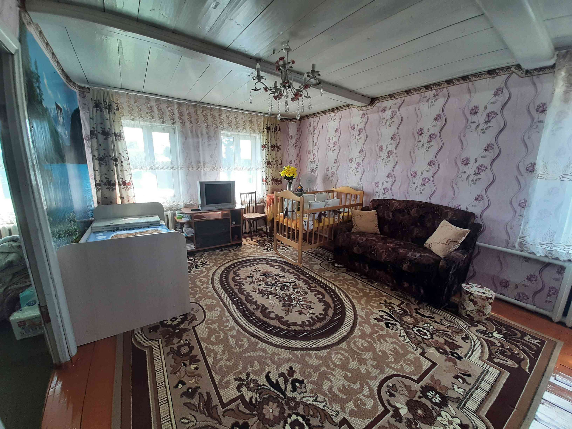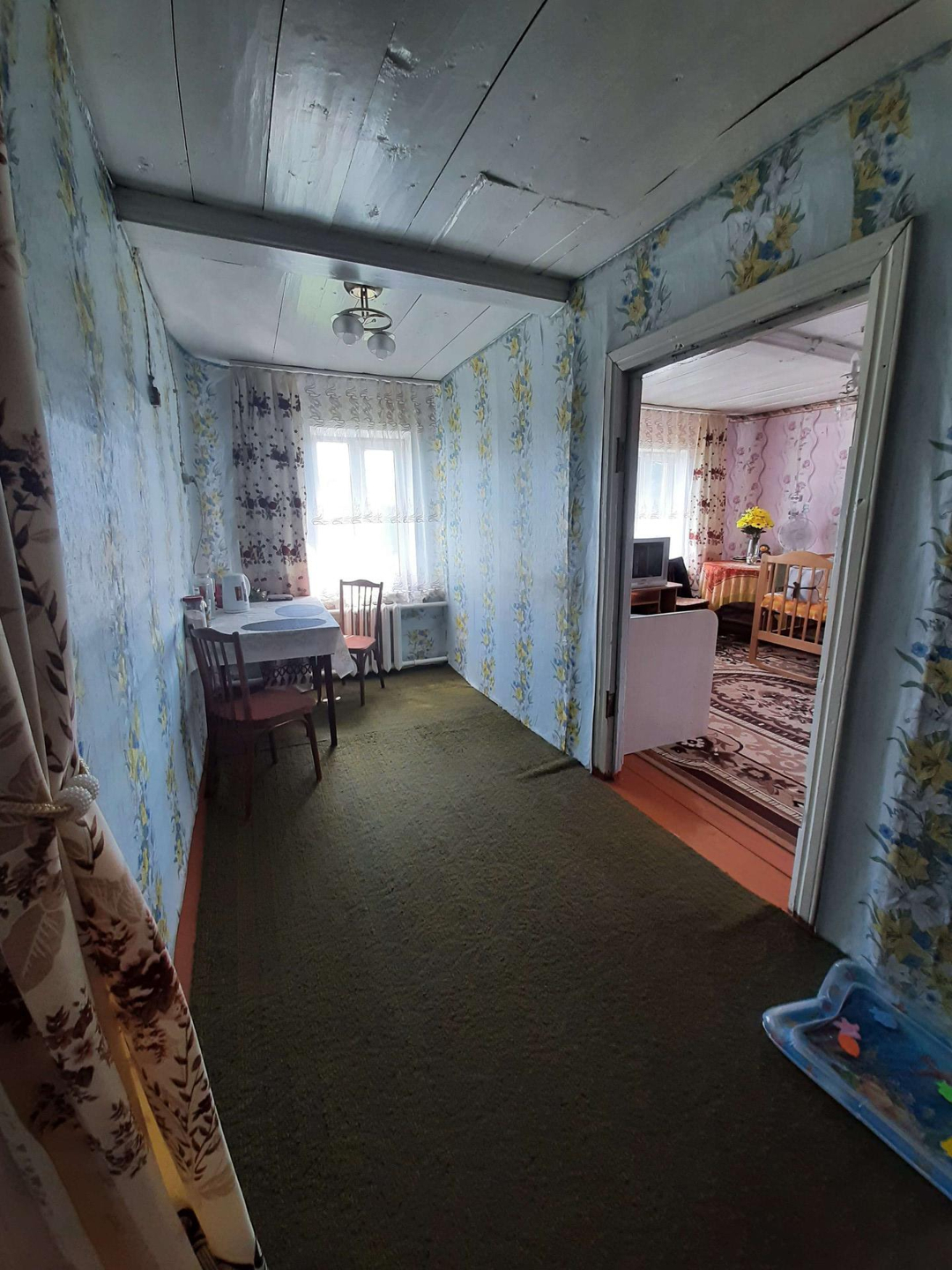 В доме 3 жилые комнаты, прихожая и кухня.