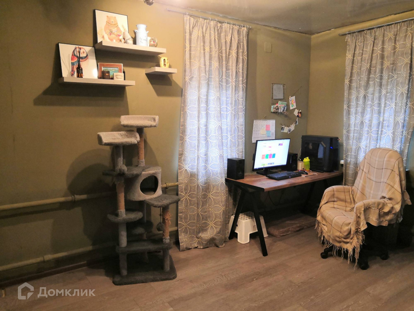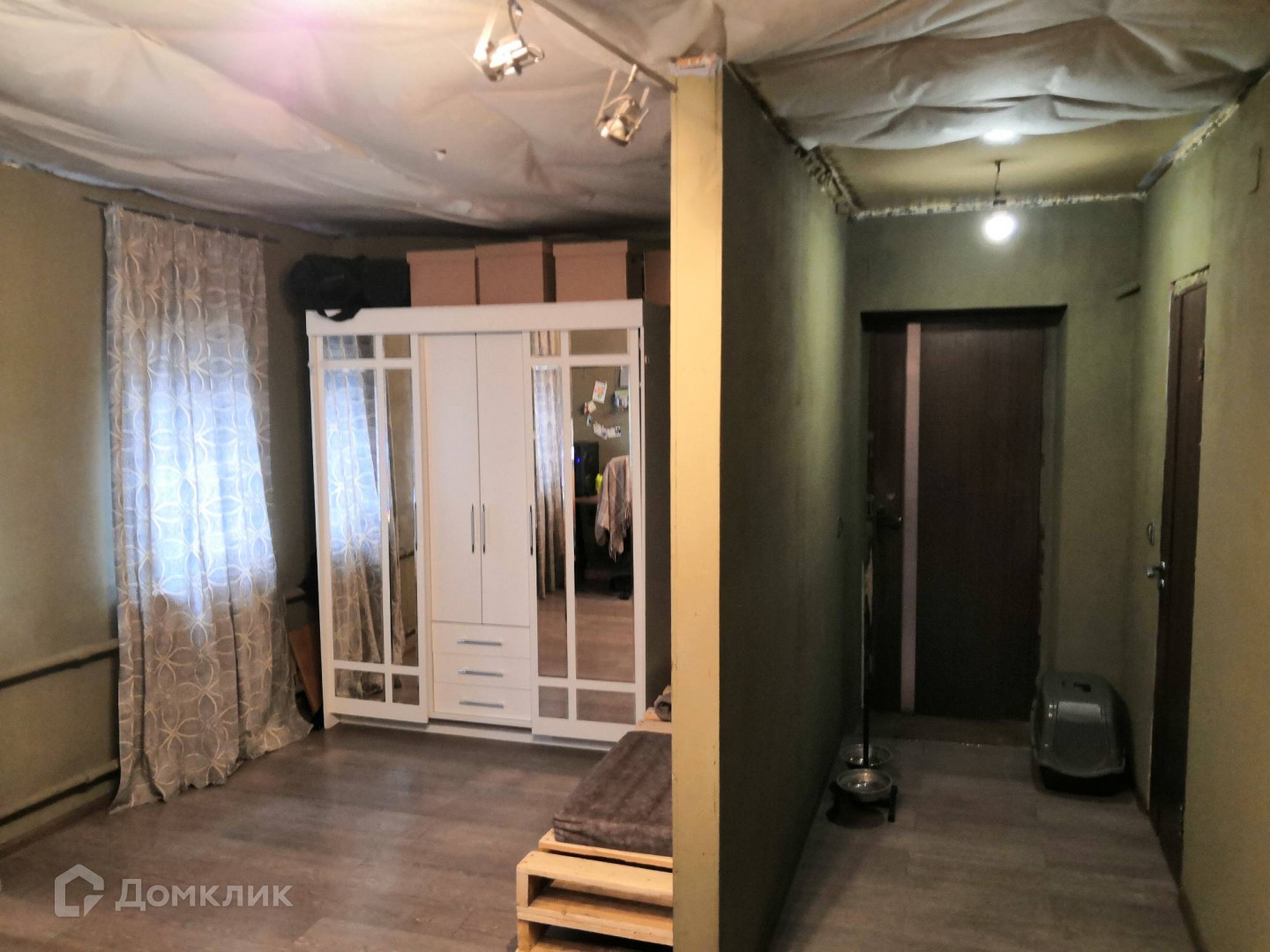 - Была произведена замена полов, выровнены стены гипсокартоном, замена труб и проводки, вставлены новые пластиковые окна.