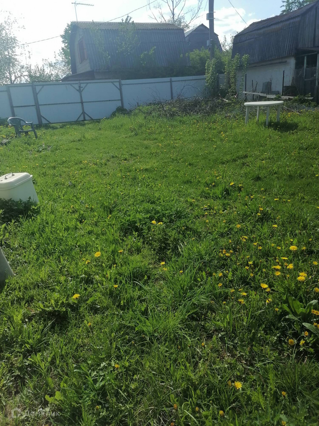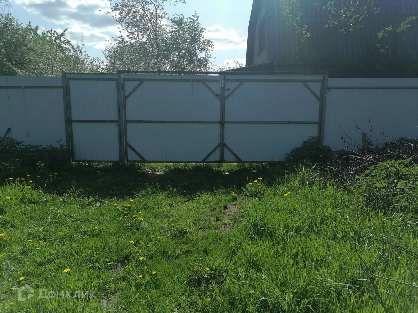 Участок ровный, с четырёх сторон забор, ворота под машину.