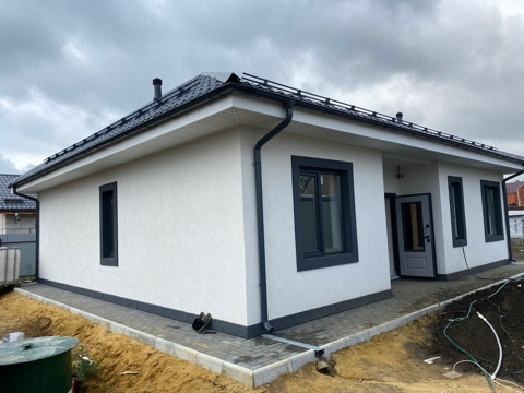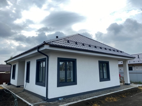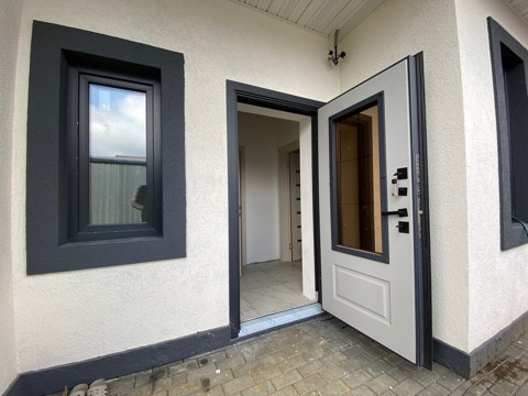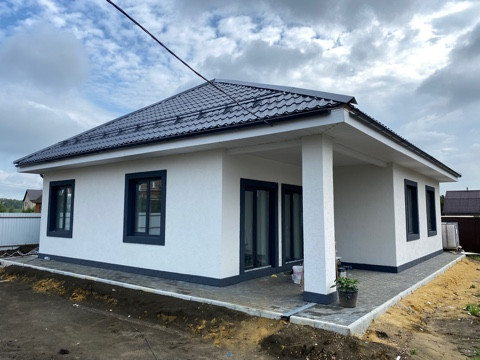 Дом построен из газосиликатных блоков, общая площадь 90 кв.м, фундамент железобетонная плита, окна установлены ПВХ, крыша покрыта металлочерепицей со снегодержателями, входная дверь с окном, в доме 2 с/у: общий и из спальни. Дом очень теплый, со всеми коммуникациями (эл-во 15 кВт, 3 фазы, разведено по дому; канализация - автоматический септик, заведена и разведена по дому, по границе проходит центральная канализация;