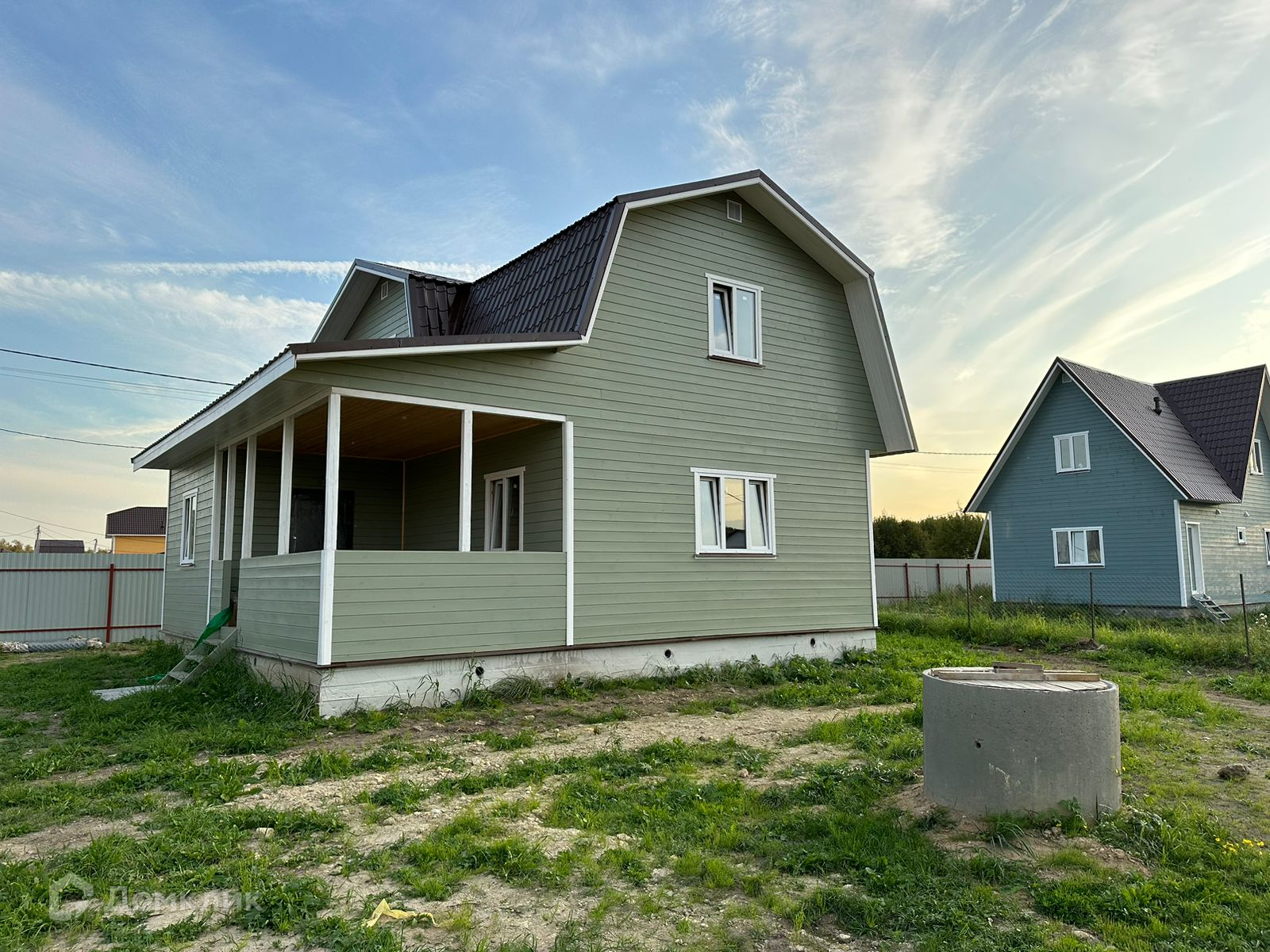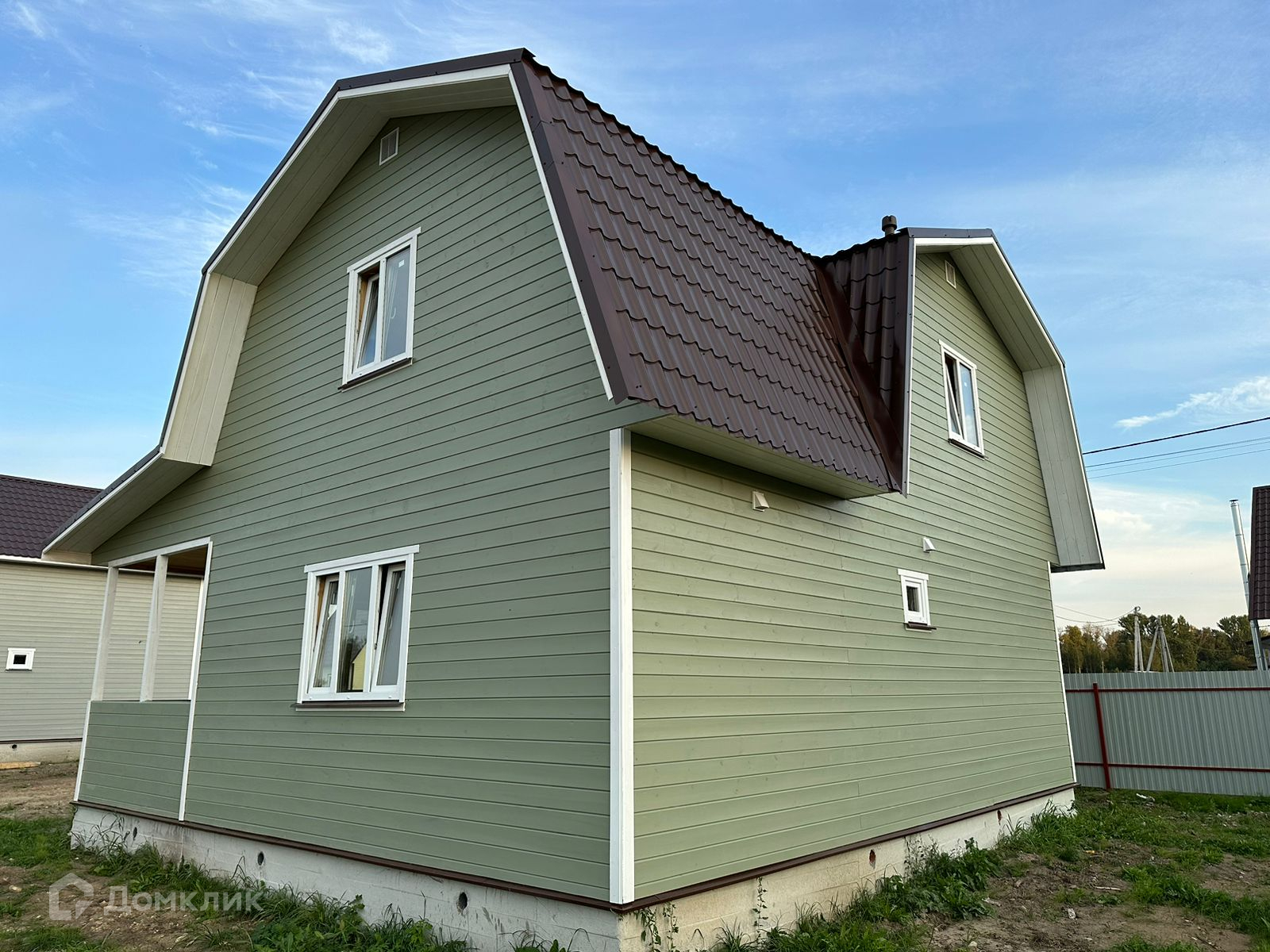 Участок с забором, распашные ворота, калитка, парковка и плитка до дома. Современный дом,полностью готовый для круглогодичного проживания.