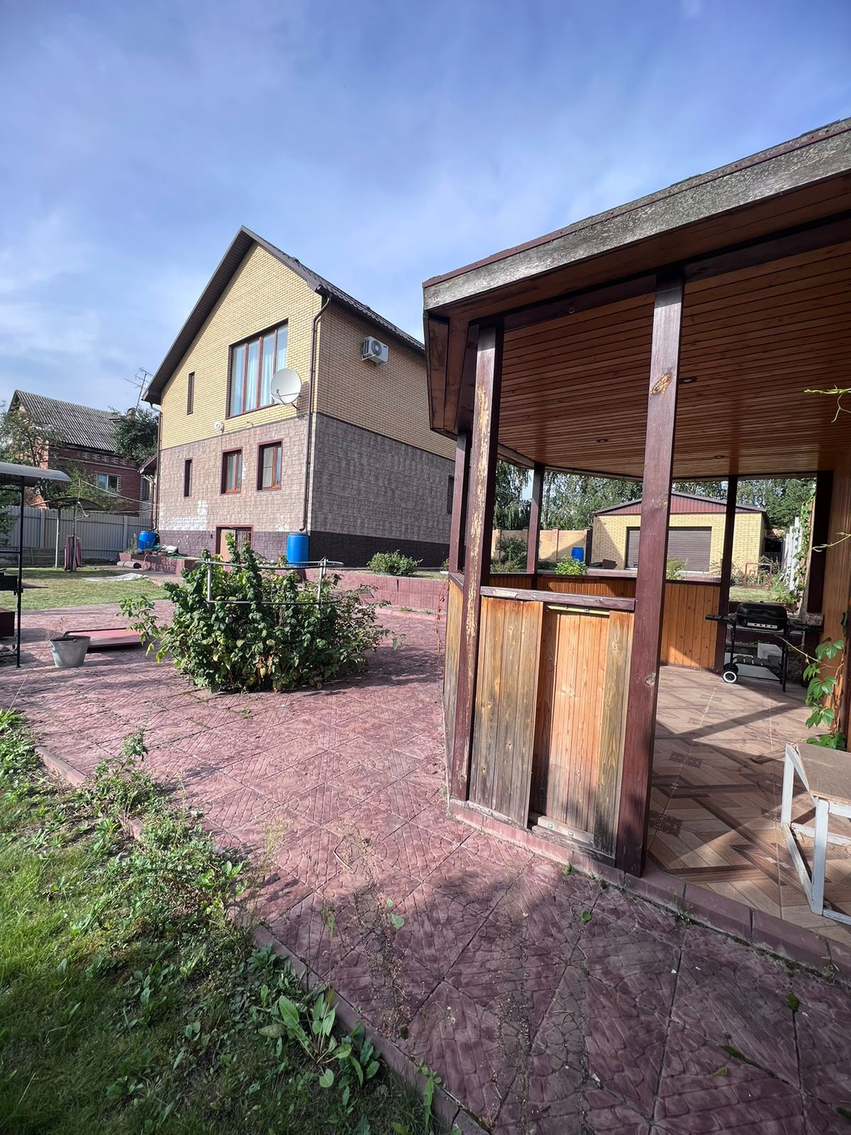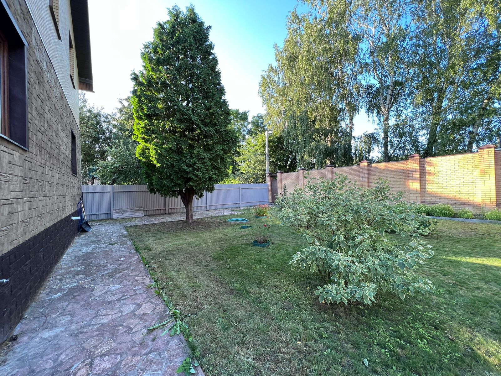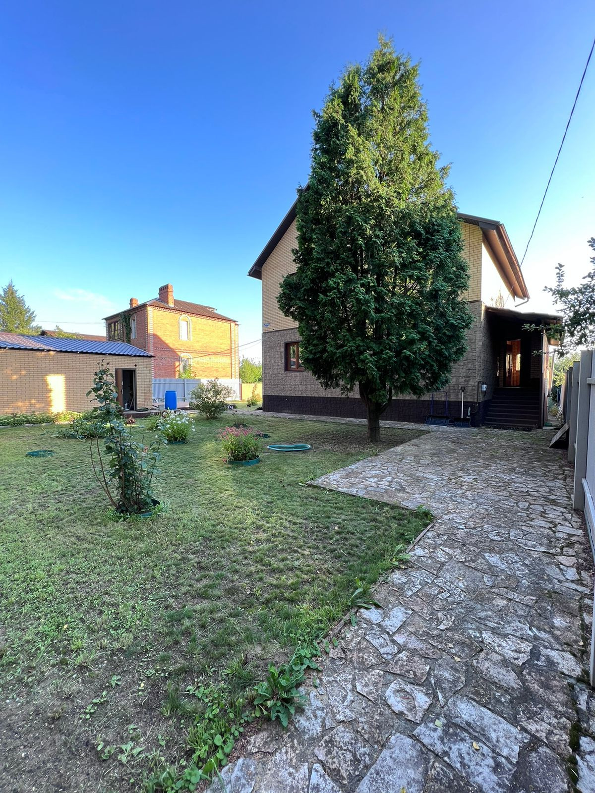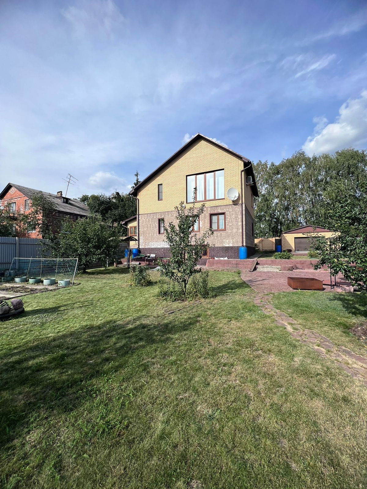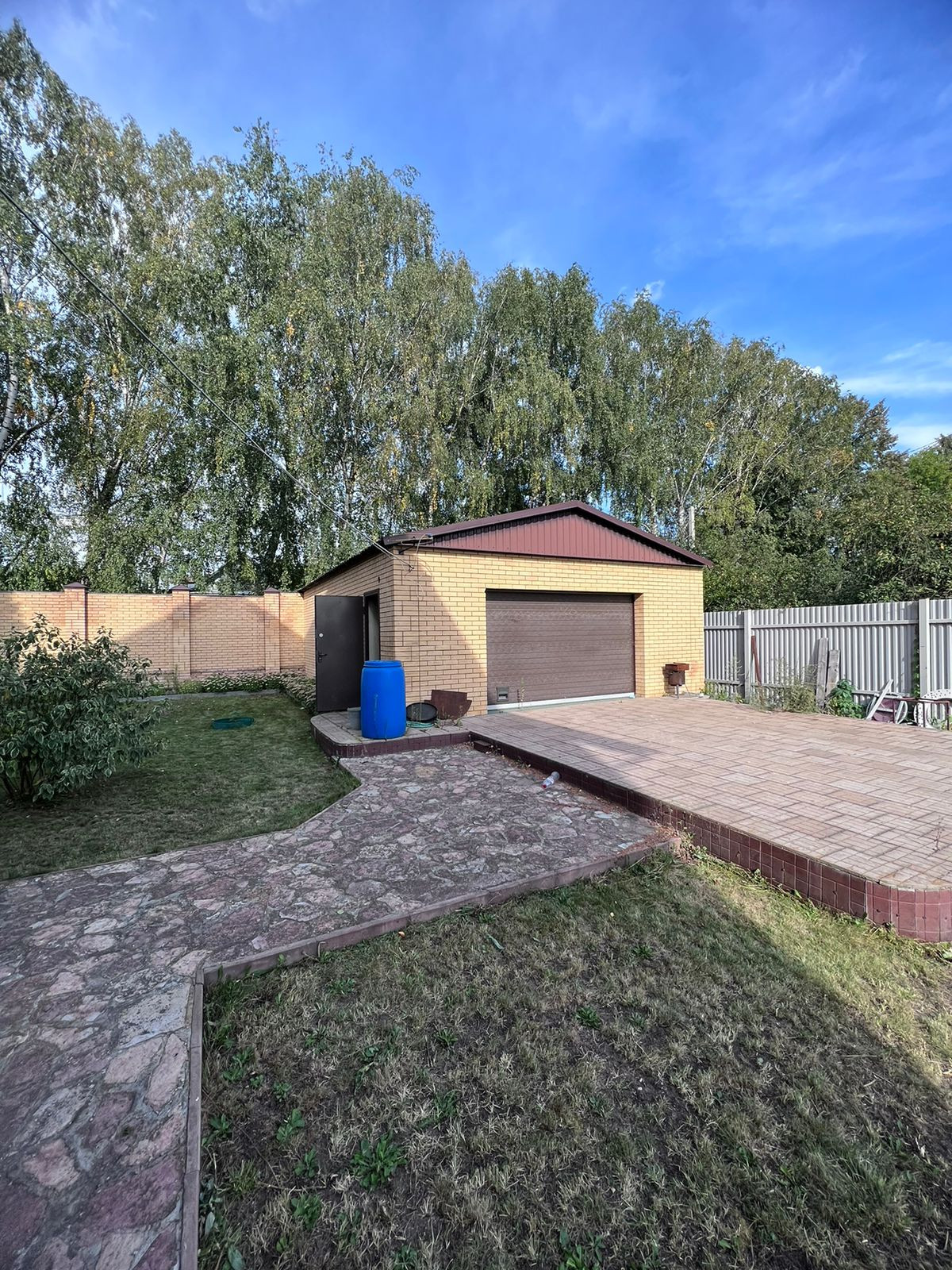 На ухоженном участке есть просторный гараж, зоны отдыха. Растут декоративные деревья и кустарники. Дорожки выложены декоративным камнем. Есть выход с участка на озеро.