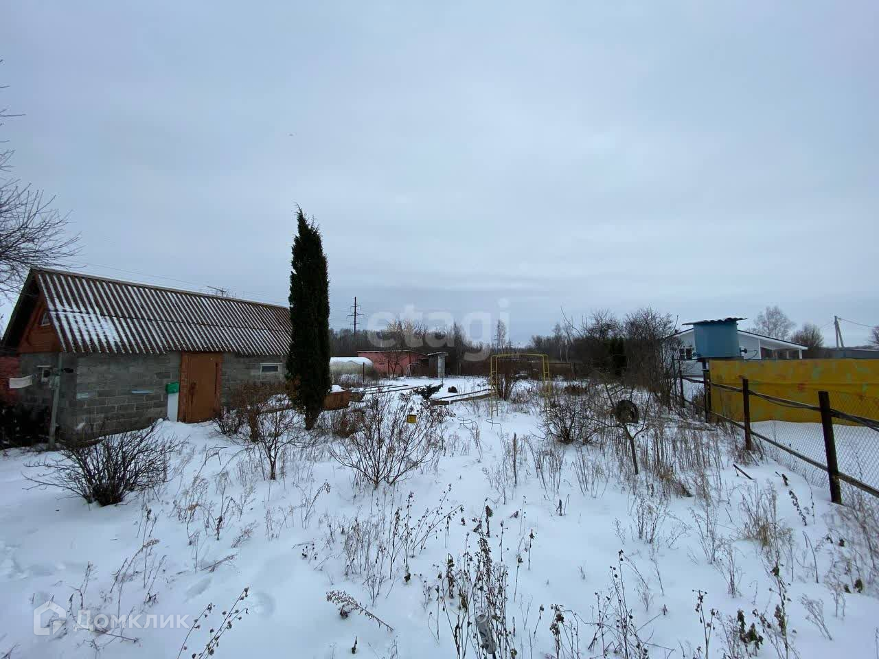 Дом также оборудован чердаком. Кроме того, на участке есть хозблок, веранда, приусадебные насаждения, а выход из дома предоставлен с двух сторон.