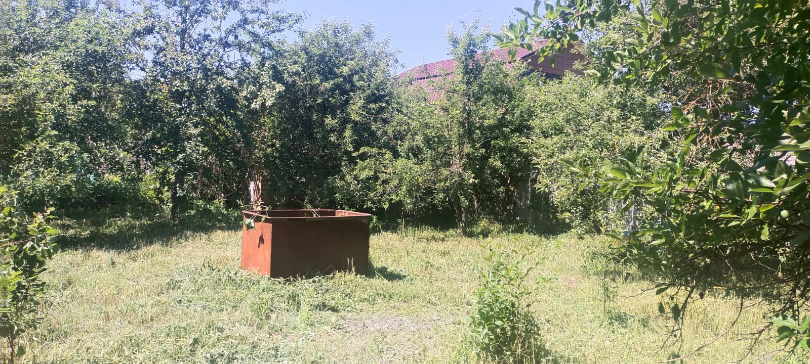 Участок 5 соток, есть поливочная вода, свет. Небольшой кирпичный домик.