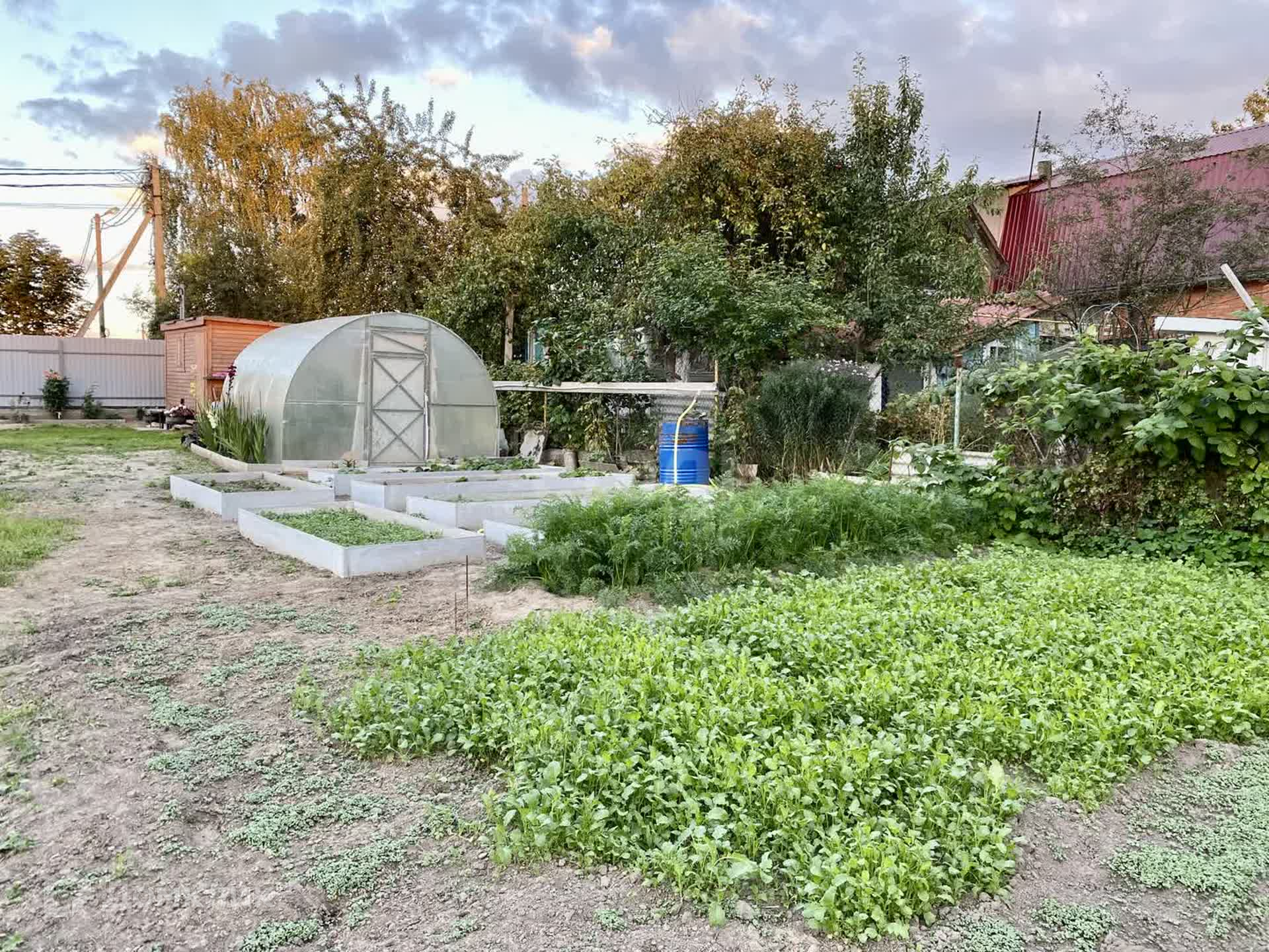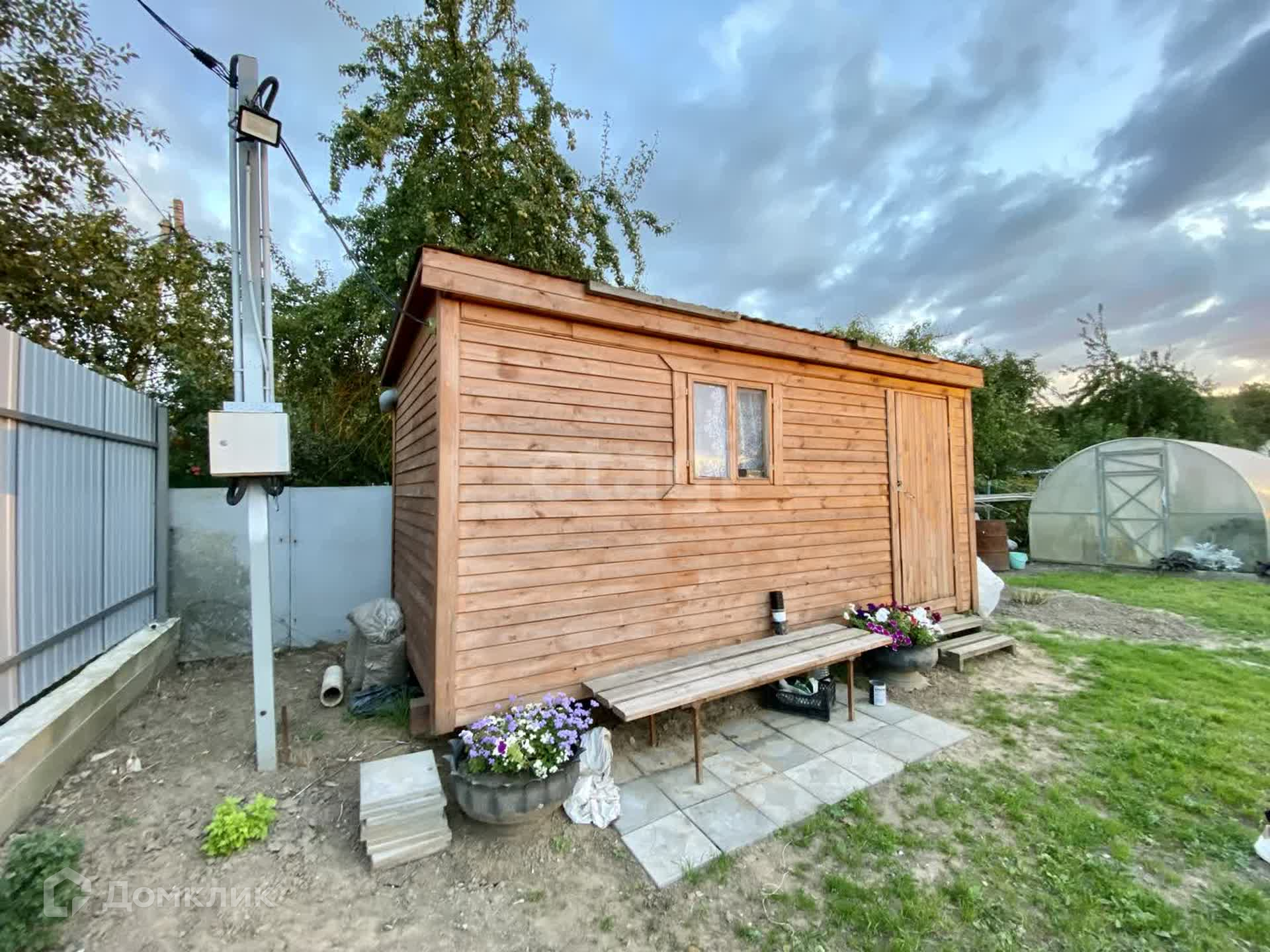 На участке находится деревянная бытовка, теплица. Электричество подключено. На участке есть колодец с водой.
