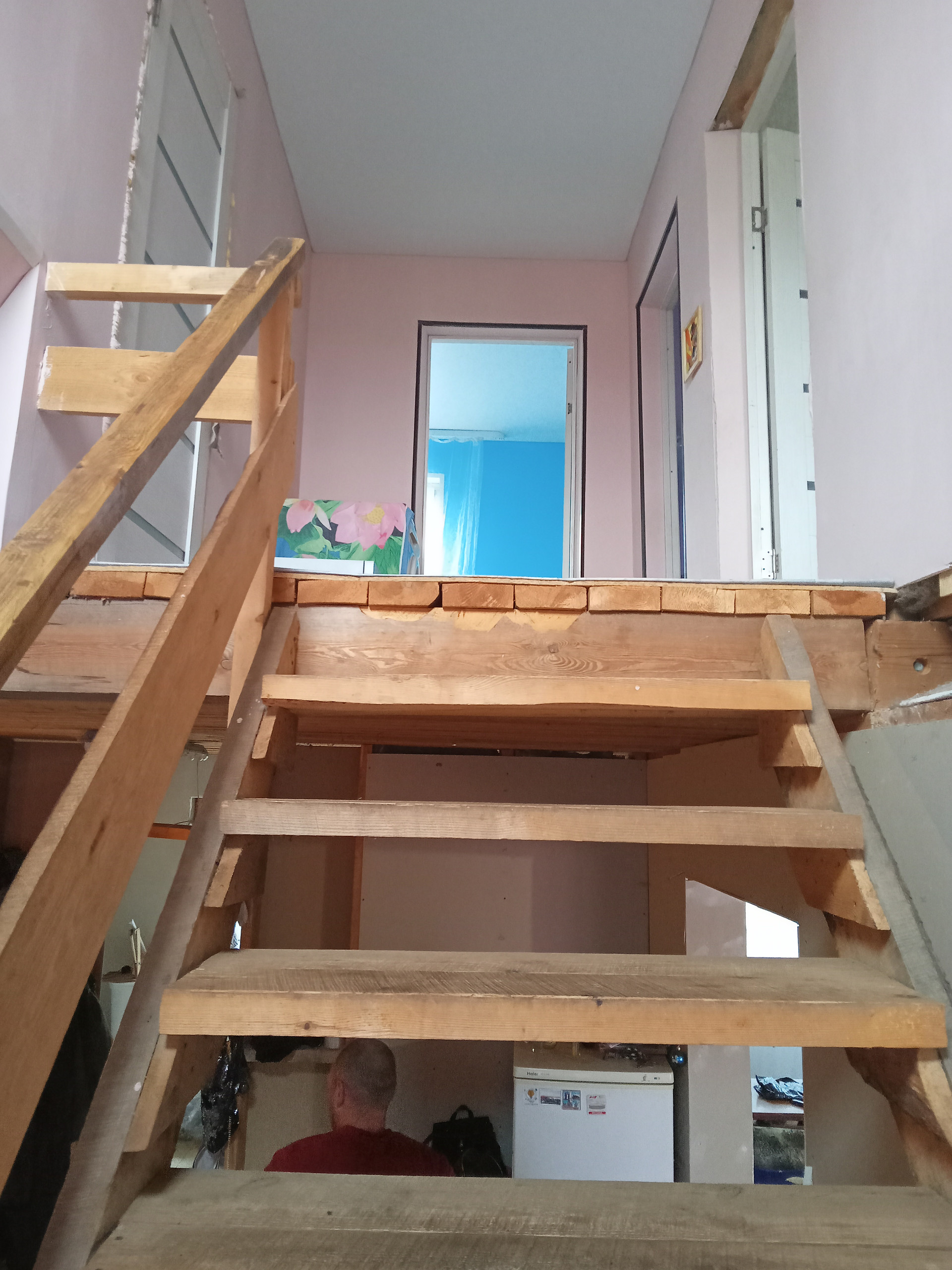 Меж.этажная лестница — деревянная.