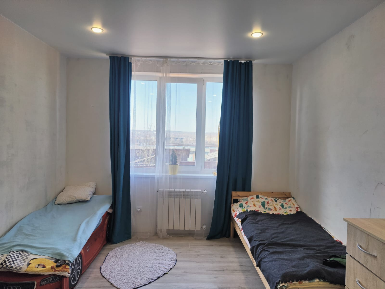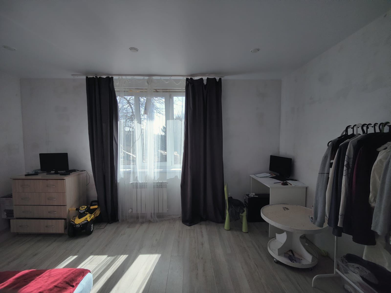 В доме 3 большие комнаты и кухня-гостиная.