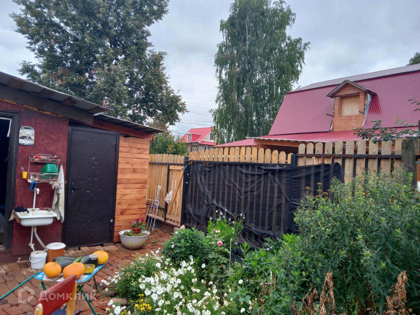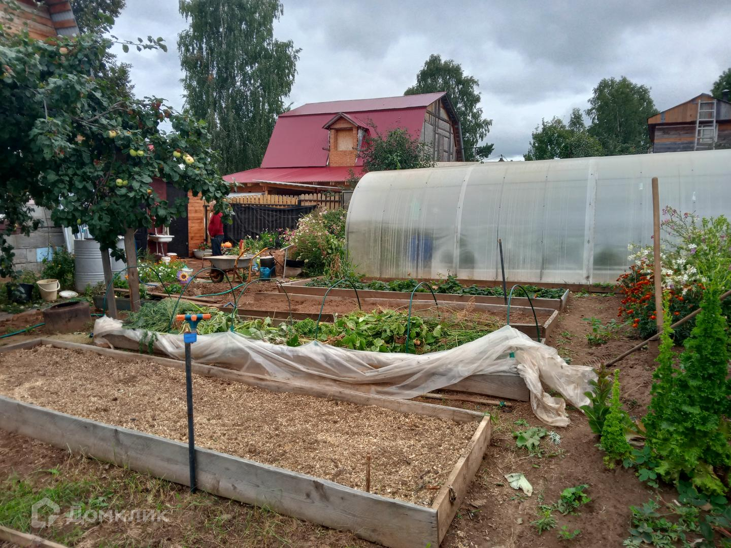 По участку он УГЛОВОЙ, 5 соток земли правильной формы . Имеются посадки многолетние цветы, яблоня, смородина.