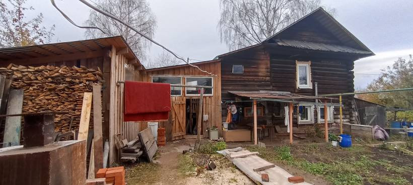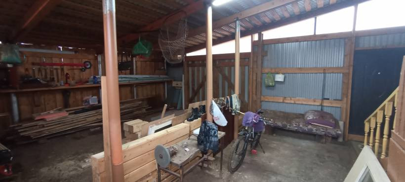 Большой крытый двор, пол забетонирован, кровля новая. Мастерская, дровяник.