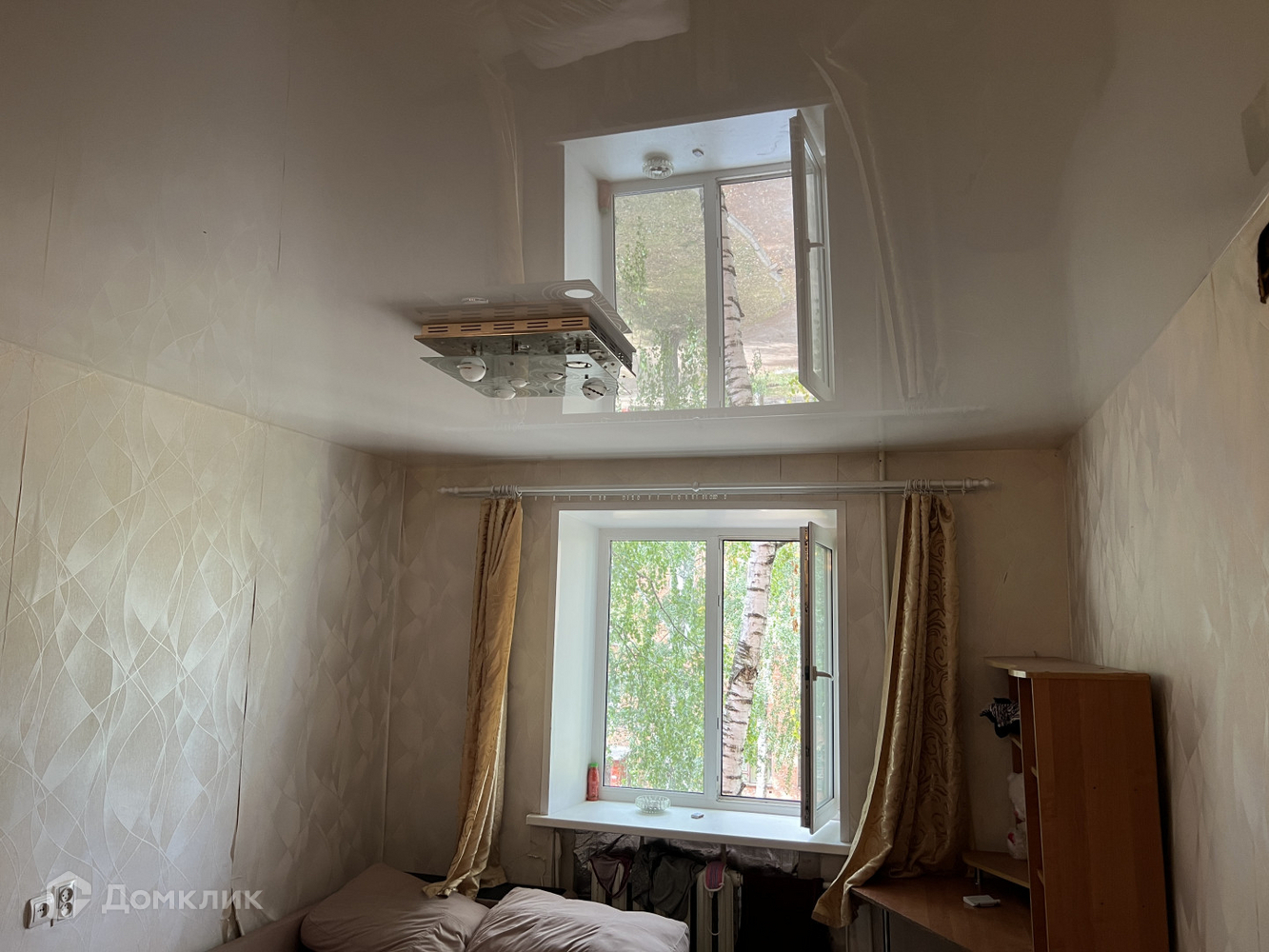 Большая космната в общежитии. Пластиковое окно, железная дверь, натяжной потолок.